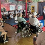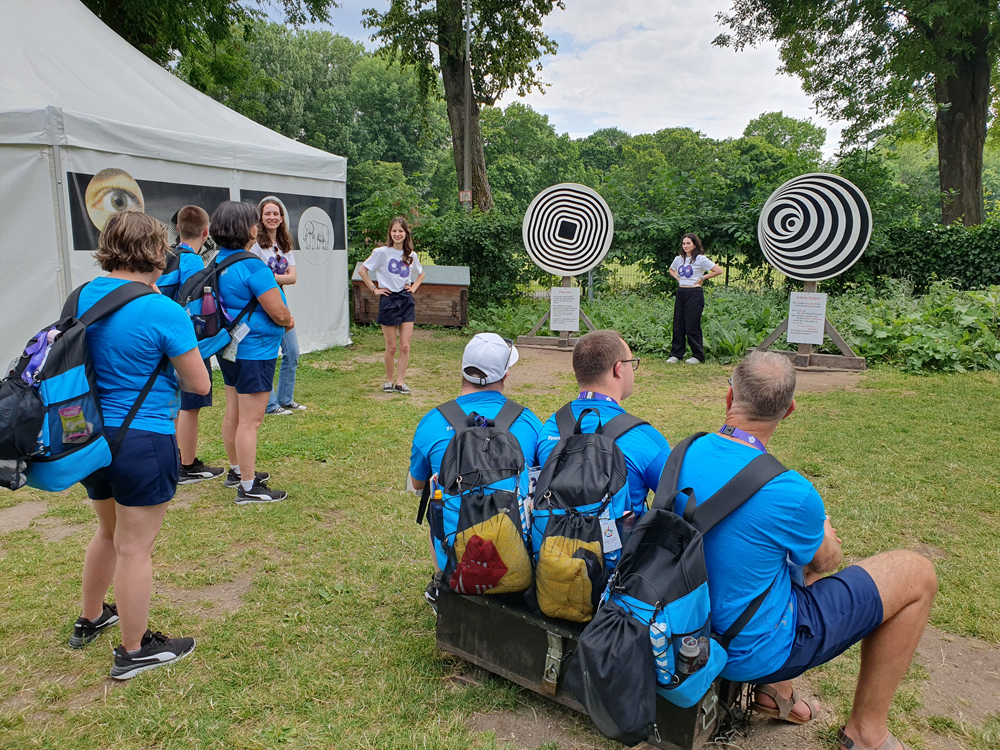 33 Schülerinnen und Schüler der 10. und 11. Klassen des musischen Labenwolf Gymnasiums haben sich für eine inklusive Tour über das Erfahrungsfeld der Sinne fit gemacht. Sie begleiten die Athletinnen und Athleten in Kleingruppen zu verschiedenen Stationen.