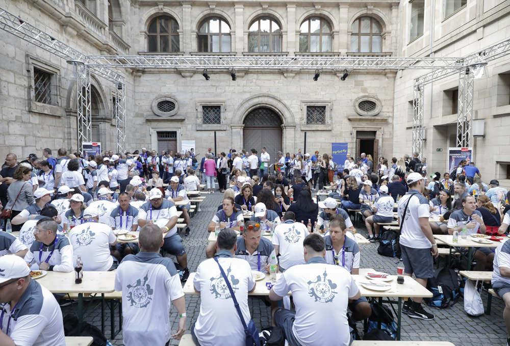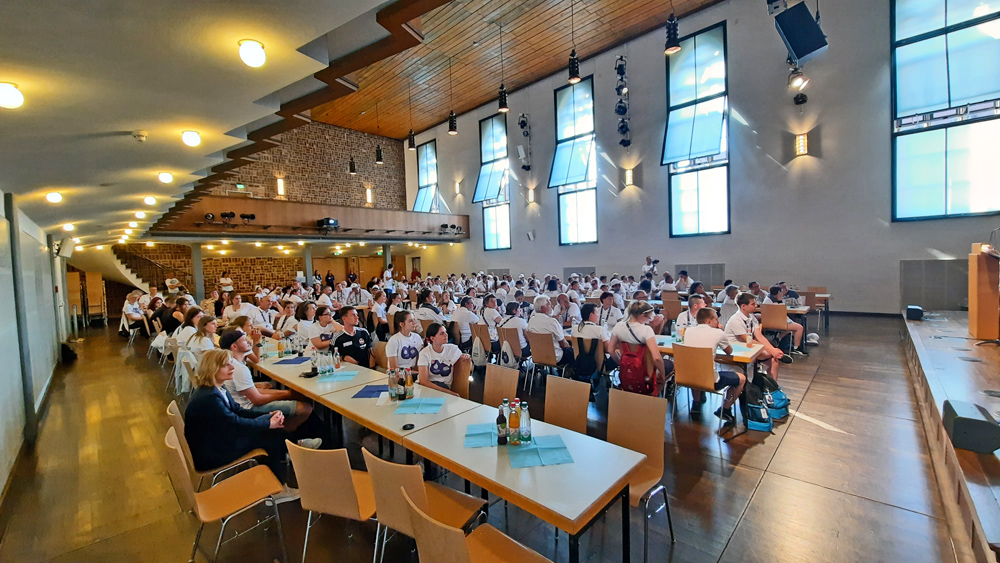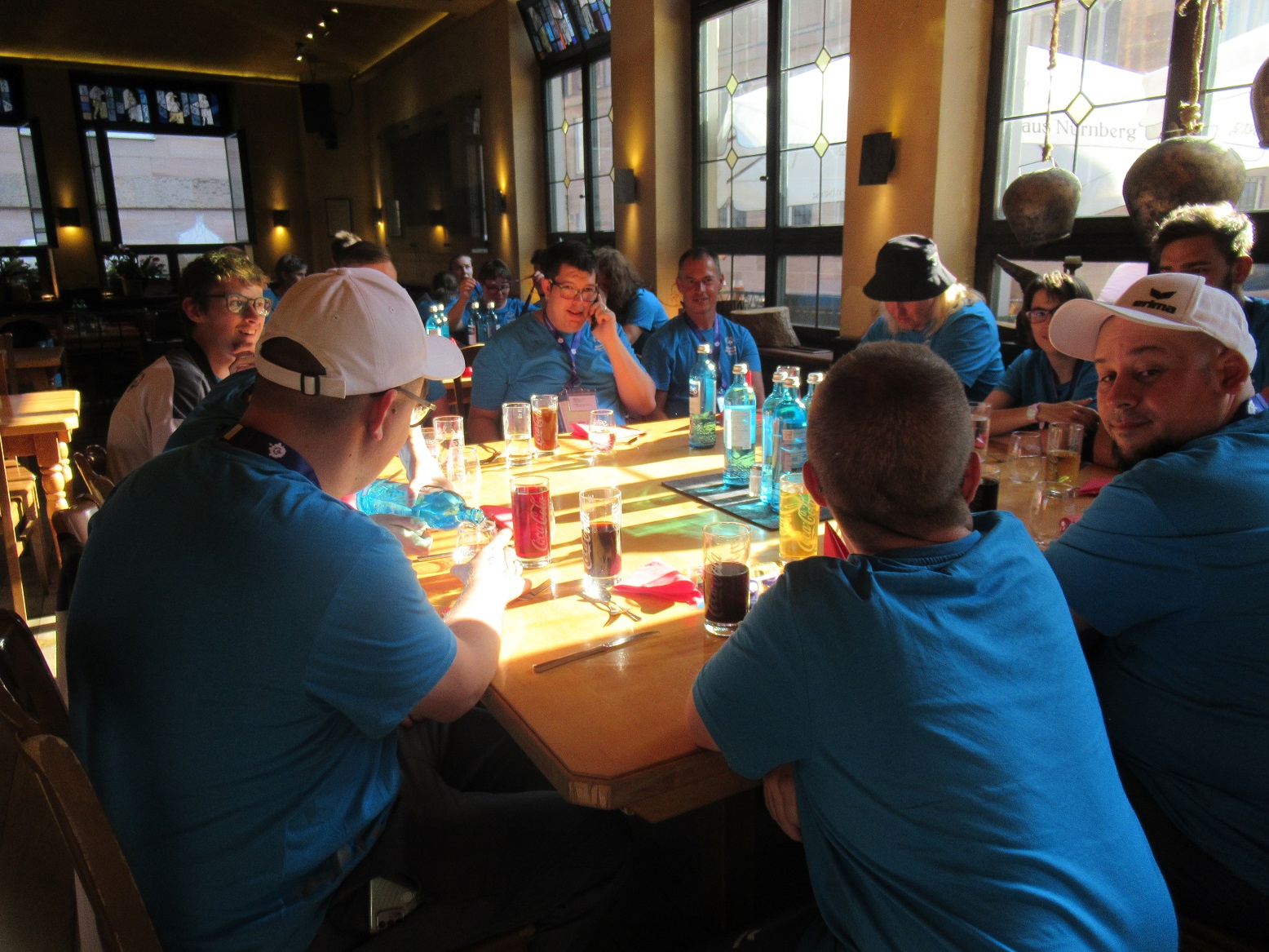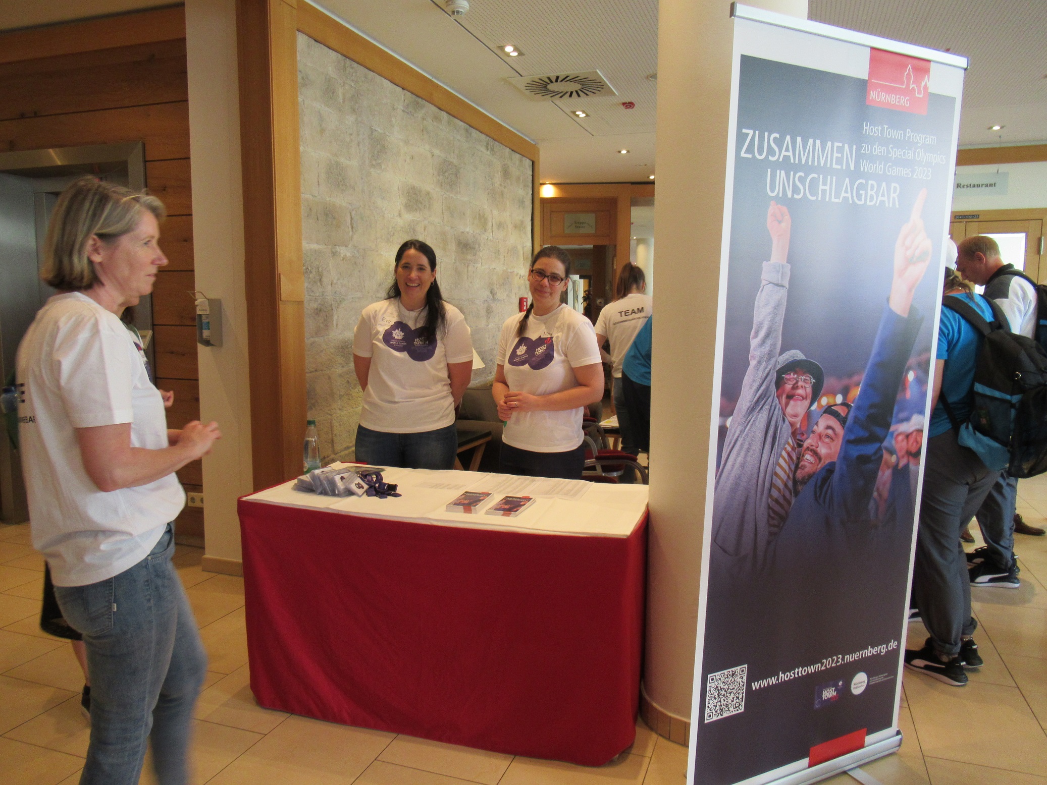 Voller Vorfreude werden die Athletinnen, Athleten und ihre Begleitung beim Hotel begrüßt. Volunteers unterstützen das Einchecken und Ankommen. Bei typisch fränkischem Abendessen lernt die Delegation danach Vertreterinnen und Vertretern der Stadt Nürnberg und des Host Town Netzwerks kennen. Mit dabei: Schul- und Sportreferentin Cornelia Trinkl.