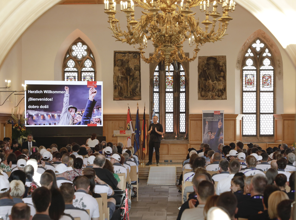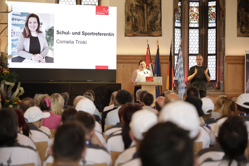 Zum Ausklang erlebnisreicher Besuchstage geht es nochmals um Austausch, Begegnung und Feiern! Die Beteiligten, Engagierten, Helferinnen und Helfer des Nürnberger Host Town Programs treffen sich zum Abendessen mit den Athletinnen und Athleten. Schul- und Sportreferentin Cornelia Trinkl eröffnet und begleitet diesen Abend.