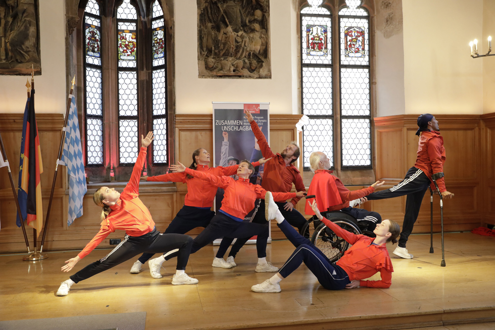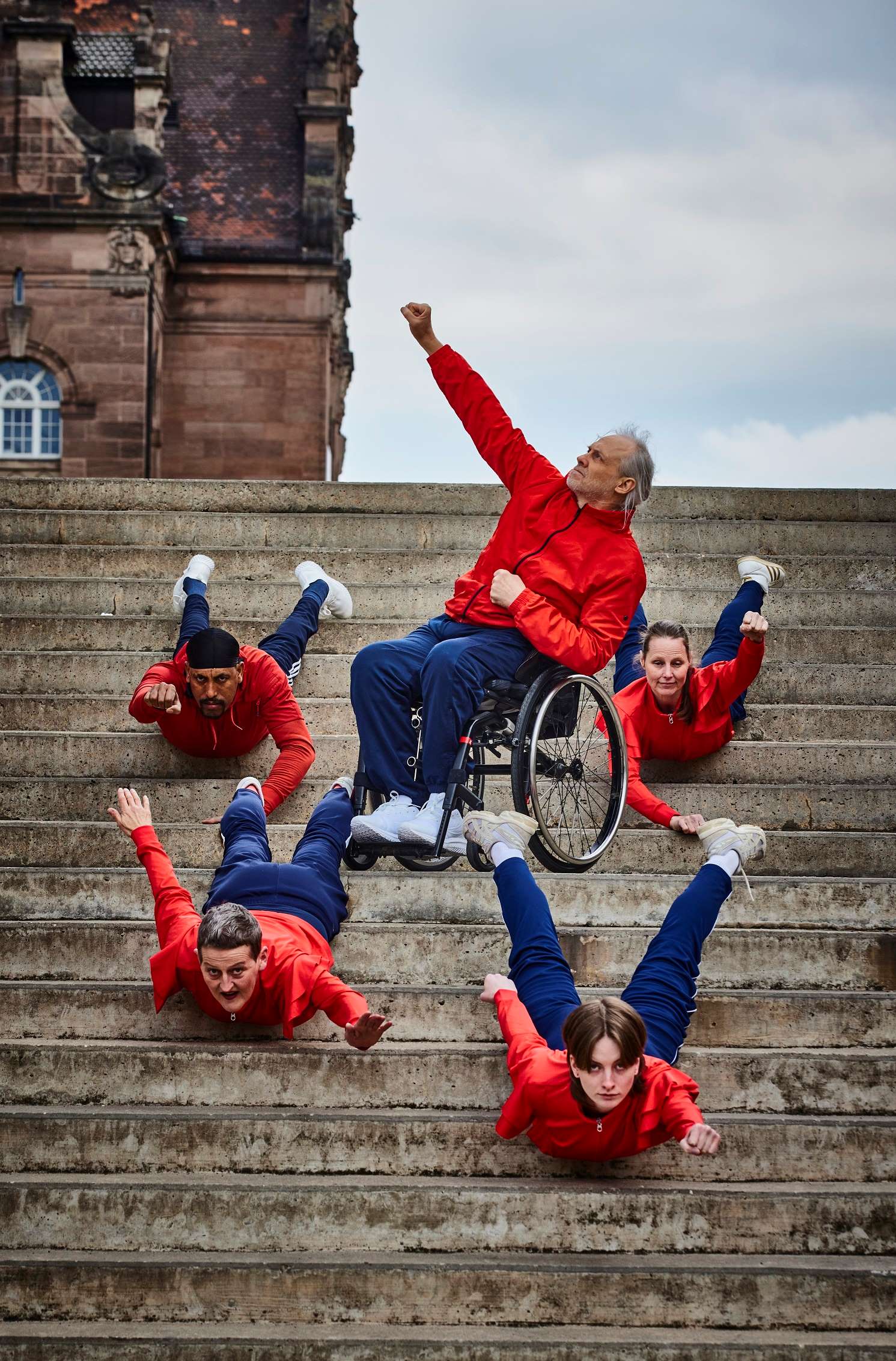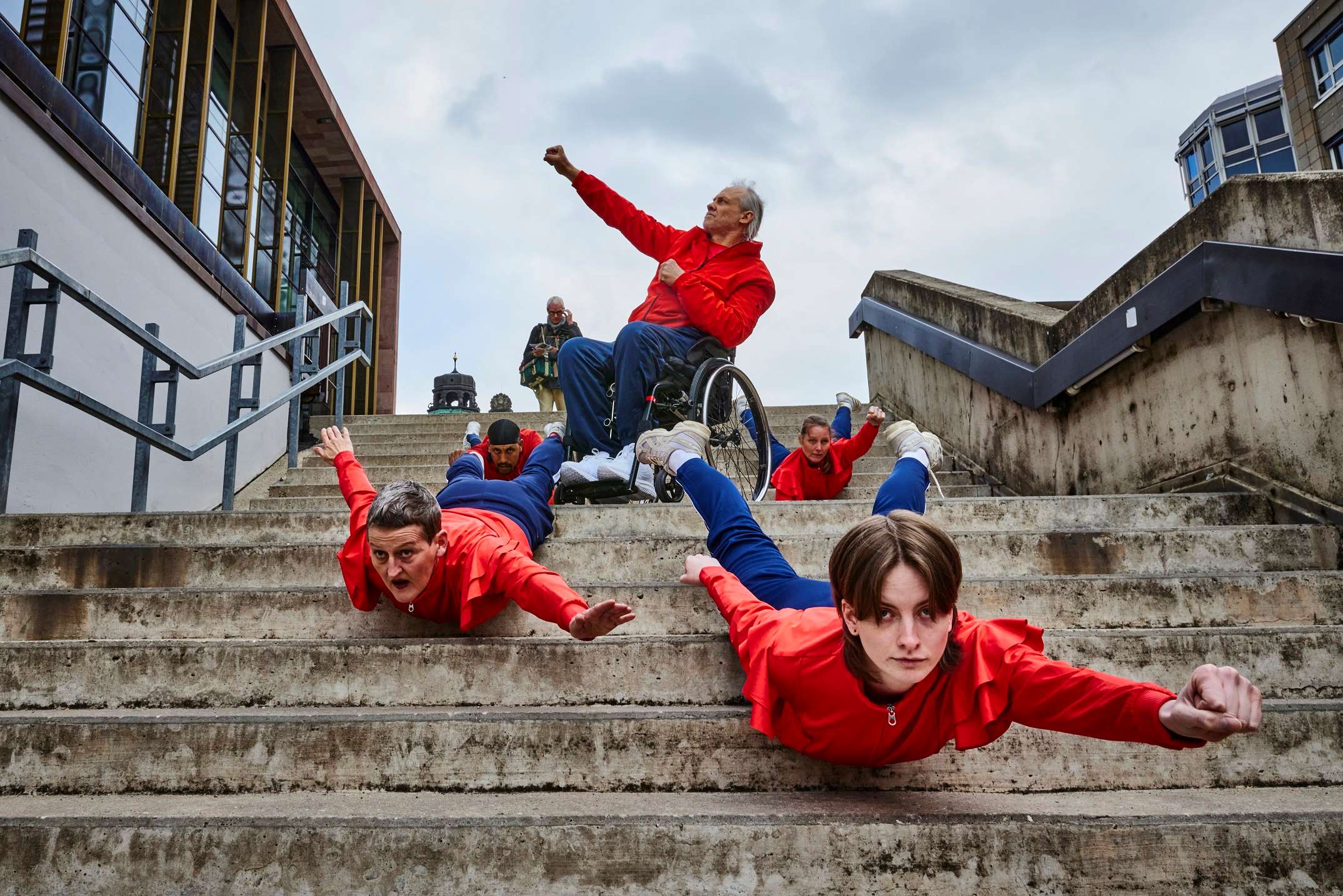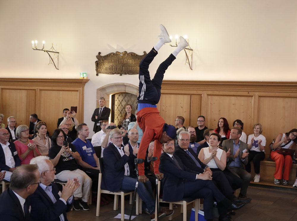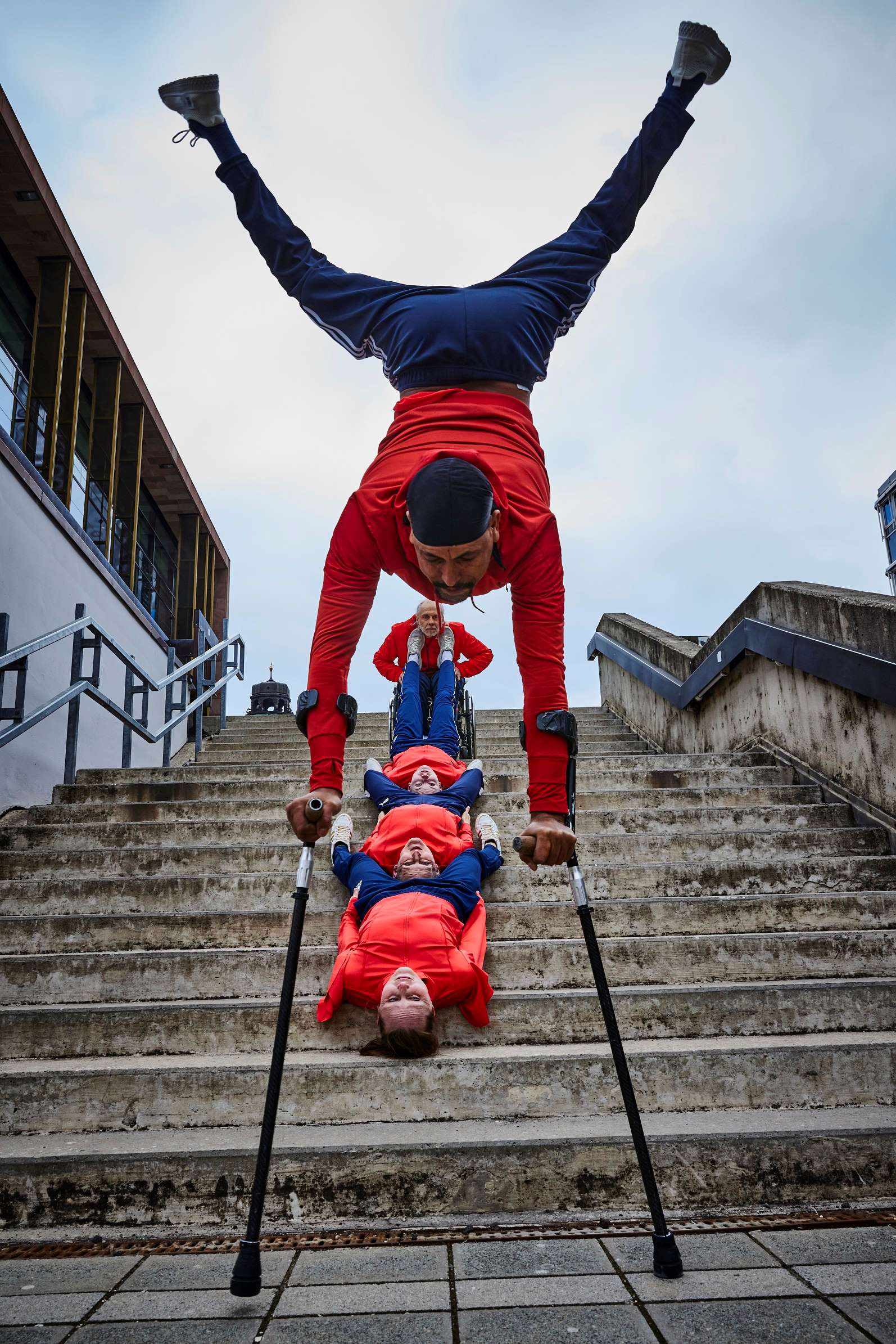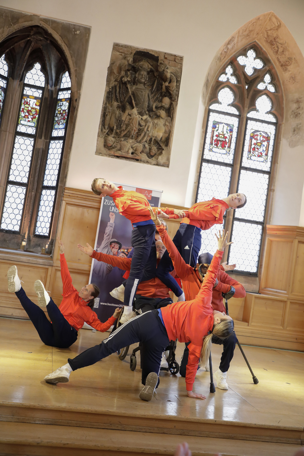 Während der Host Town Tage wurde auch künstlerisch für Inklusion plädiert: Fünf Tänzerinnen und Tänzer setzten sich mit mehreren Vorstellungen im öffentlichen Raum tänzerisch, akrobatisch und spielerisch mit dem Thema Treppen auseinander und formulierten damit ein eindrucksvolles künstlerisches Manifest zur barrierefreien Stadt der Zukunft.