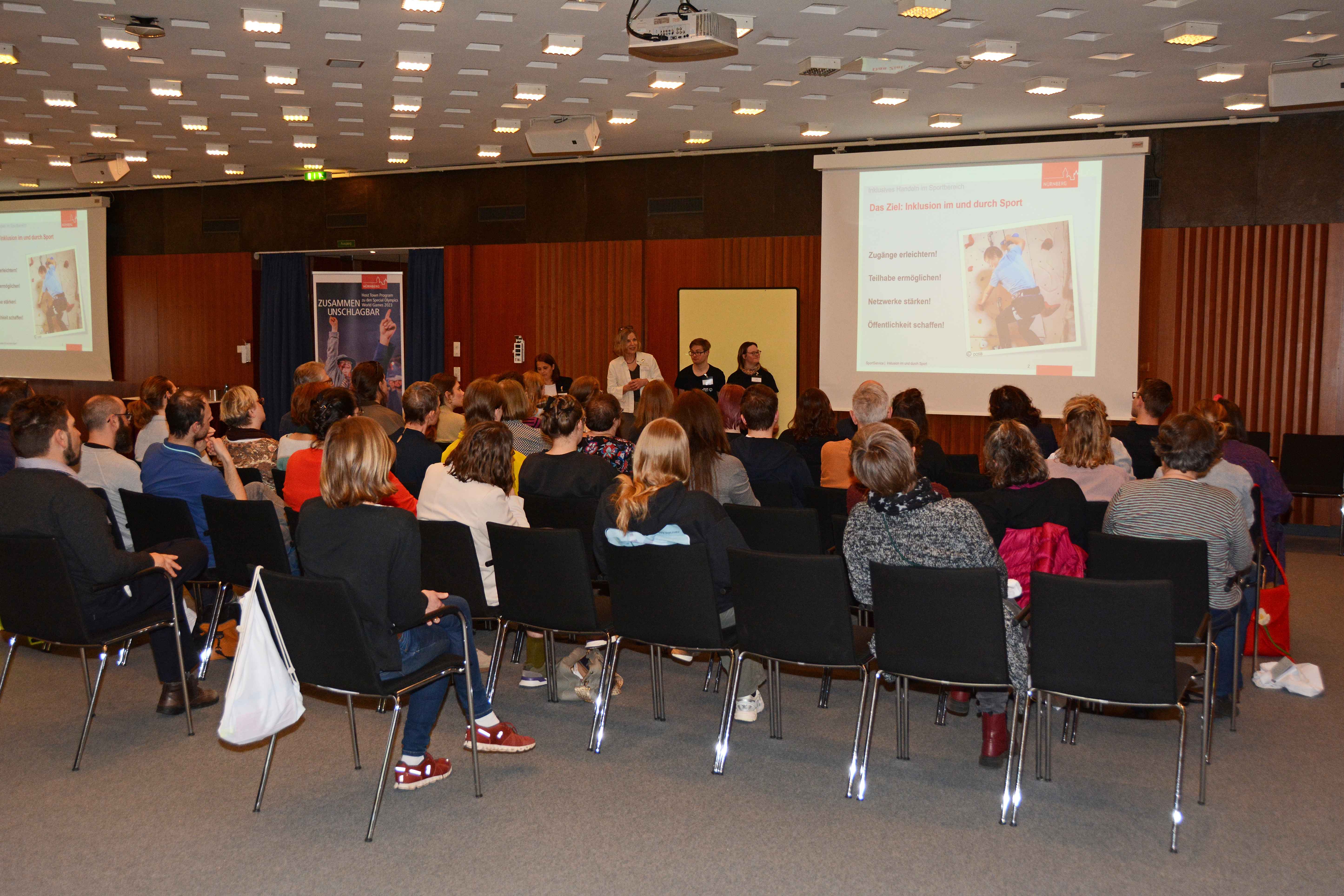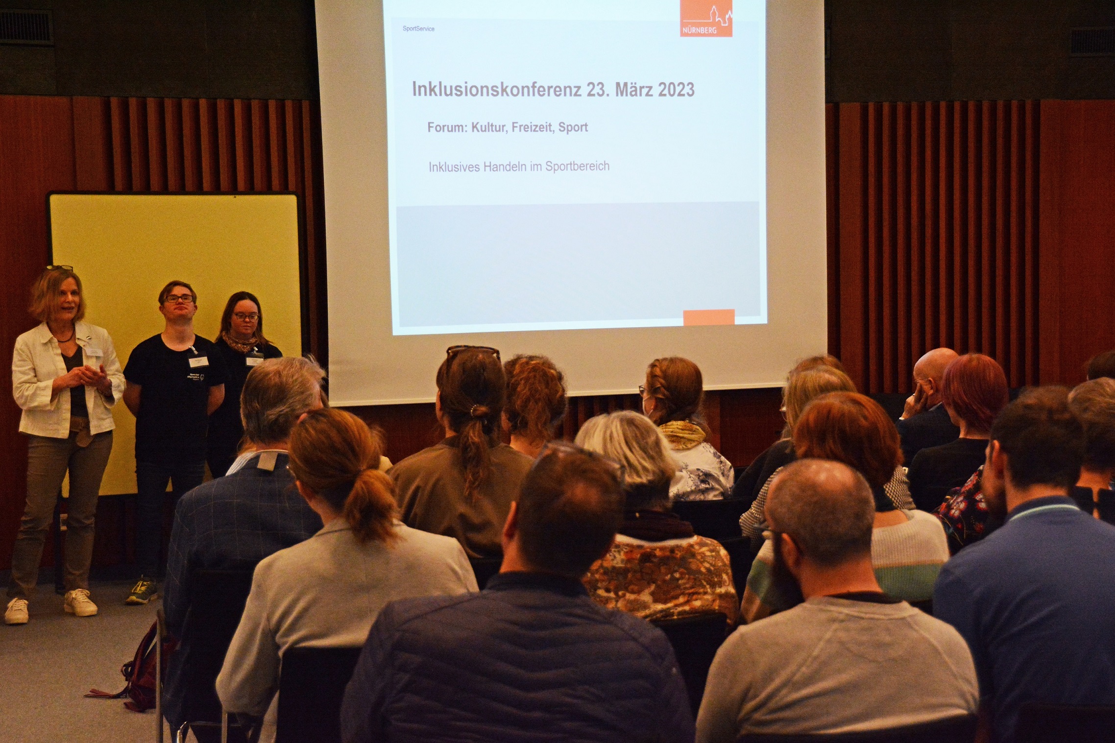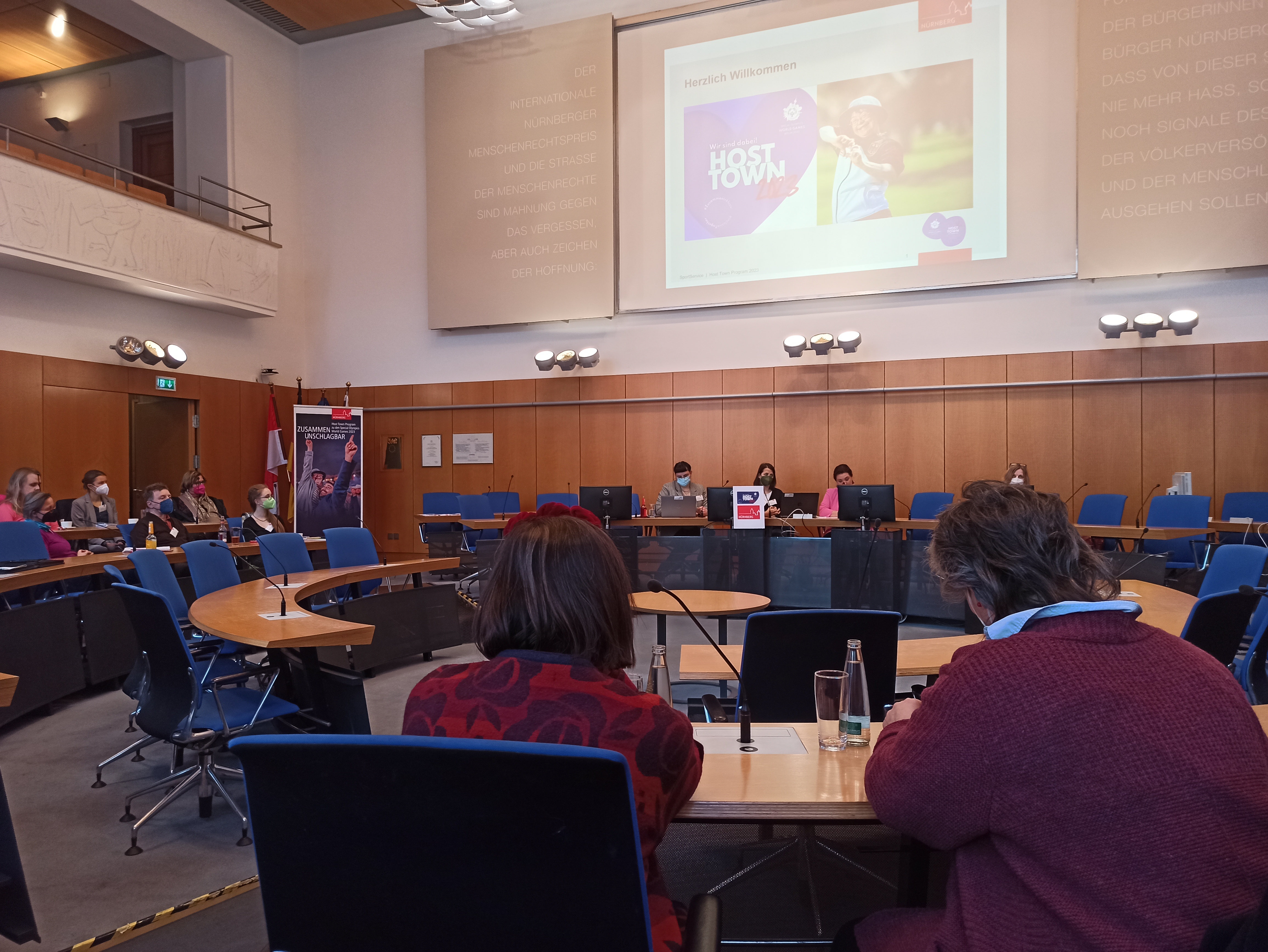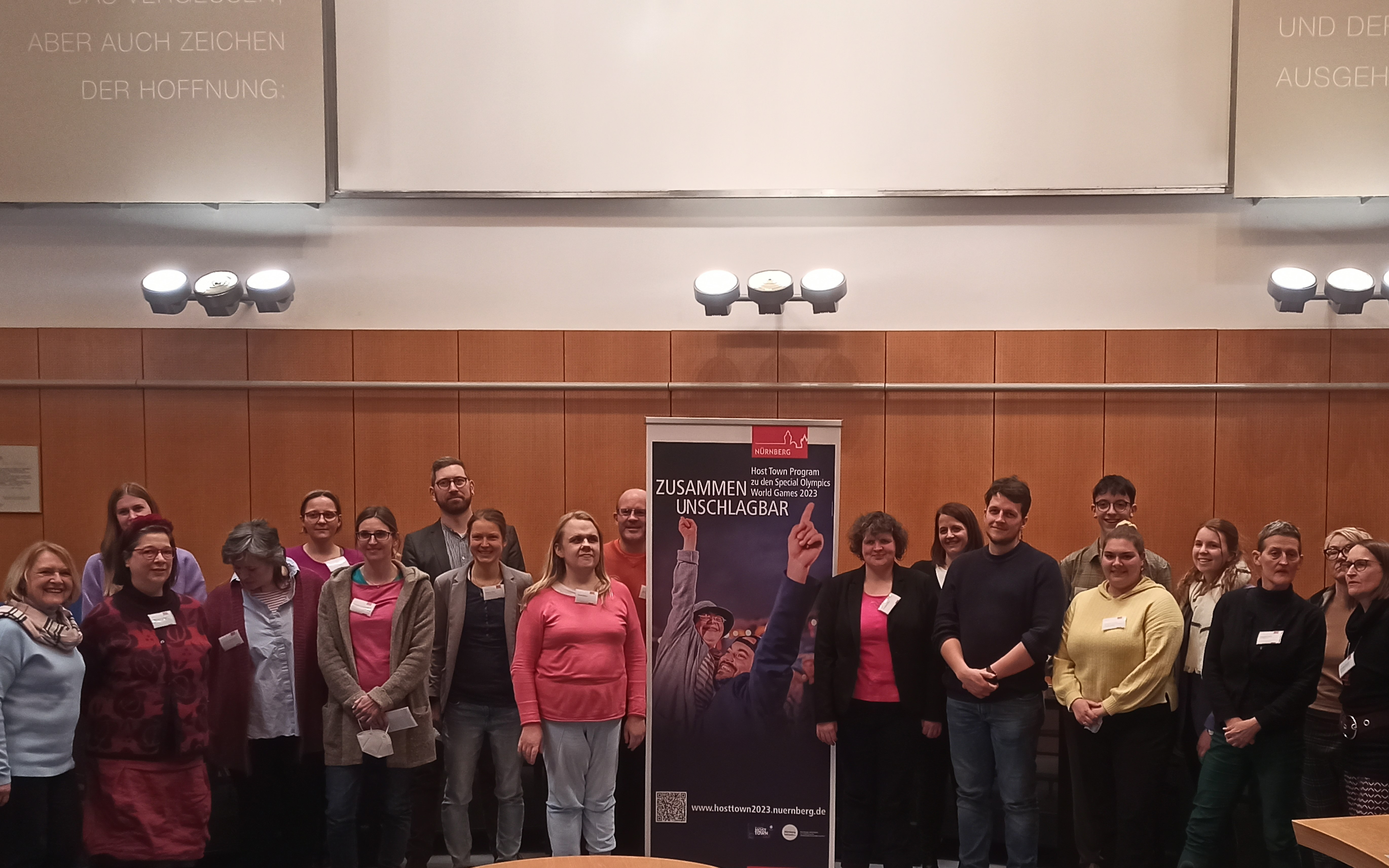 Aktionsplans zur Umsetzung der UN-Behindertenrechtskonvention (UNBRK) - bei all diesen Maßnahmen geht es um die gleichberechtigte Teilhabe von Menschen mit und ohne Behinderung in Nürnberg. Das Host Town Program wurde im Rahmen des Handlungsfeld "Freizeit, Kultur, Sport" vorgestellt. Dabei gaben Teilnehmende an inklusiven Sportprogrammen lebendige Einblicke in das Potential der Inklusion im und durch Sport.