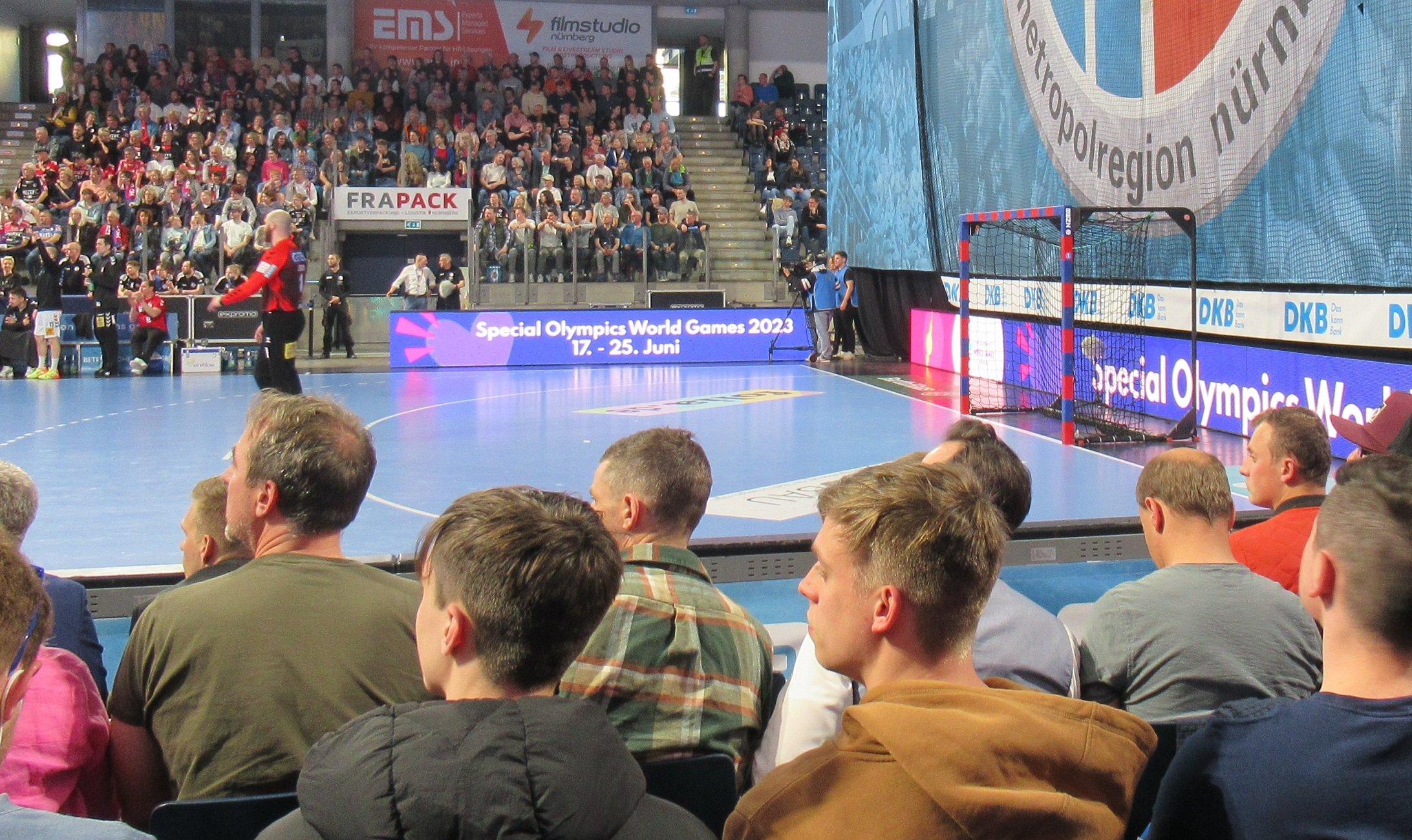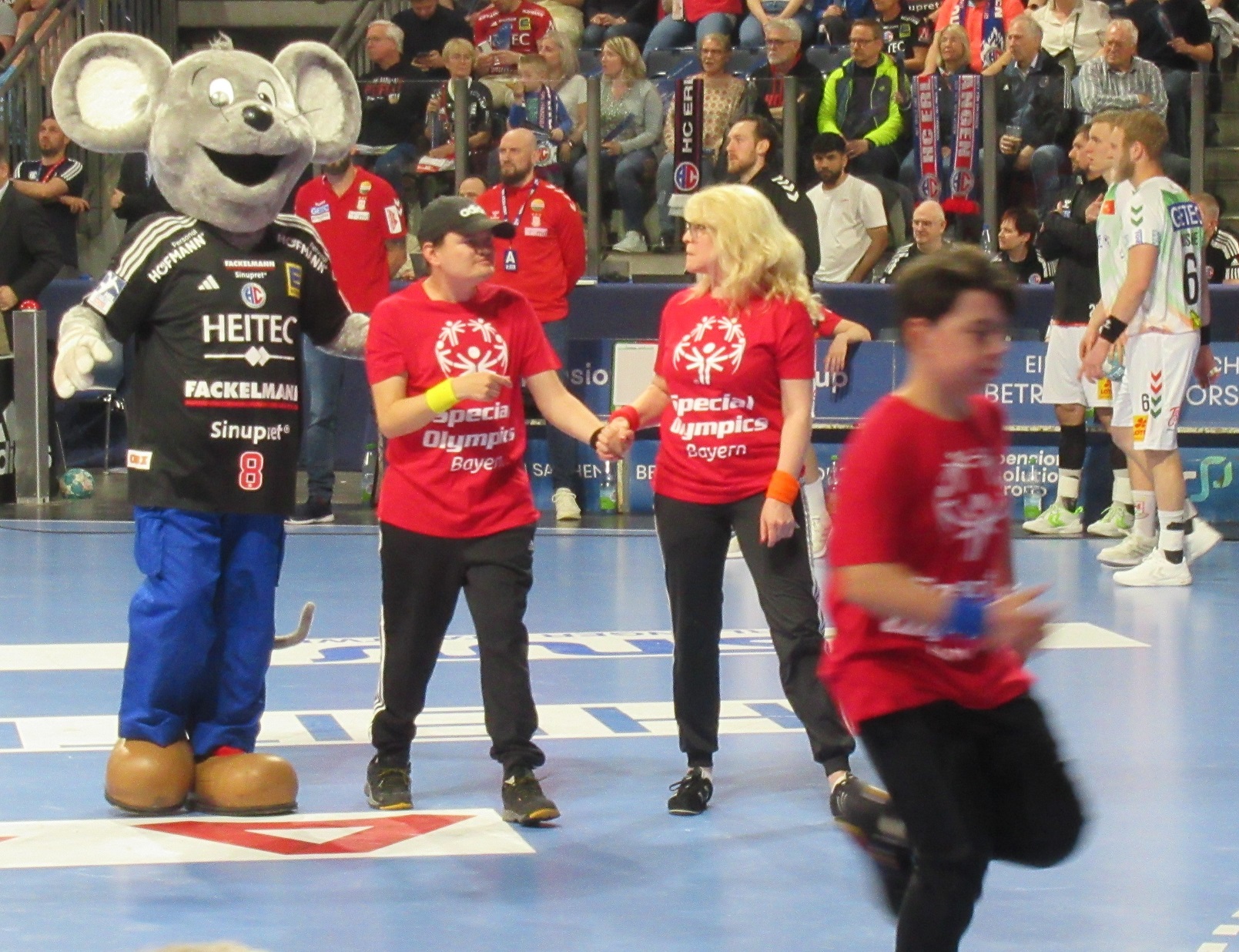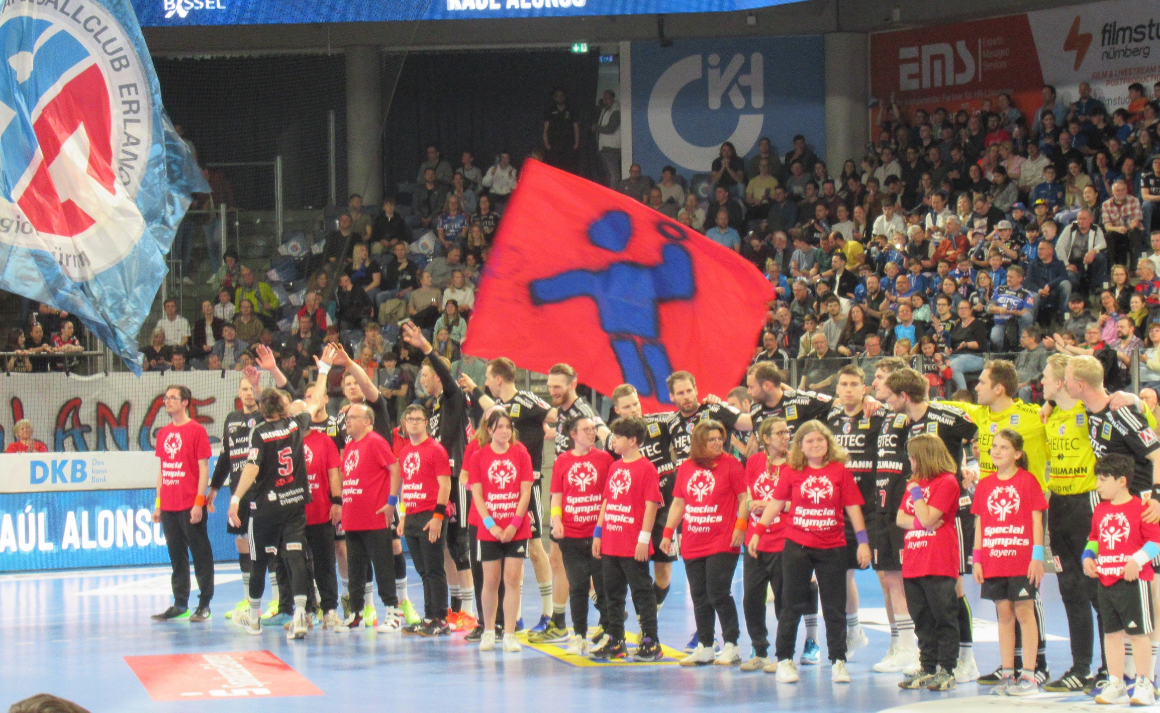 Beim Spiel HC Erlangen - SC Magdeburg war vieles inklusiv: Auf einer Aktionsfläche gab es neben spannenden Infoständen einen Handball-Rollstuhlparcours zum mitmachen. Außerdem konnte man dort das Special Olympics Handballteam kennen lernen. Auch rund um das Spiel war an alle gedacht: Kinder mit Beeinträchtigung waren beim Einlauf der Spieler dabei, eine Gebärdendolmetscherin übersetzte und es wurde für die Special Olympics World Games und das Host Town Program geworben.