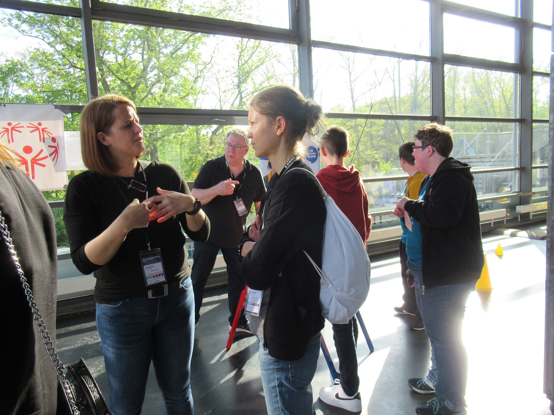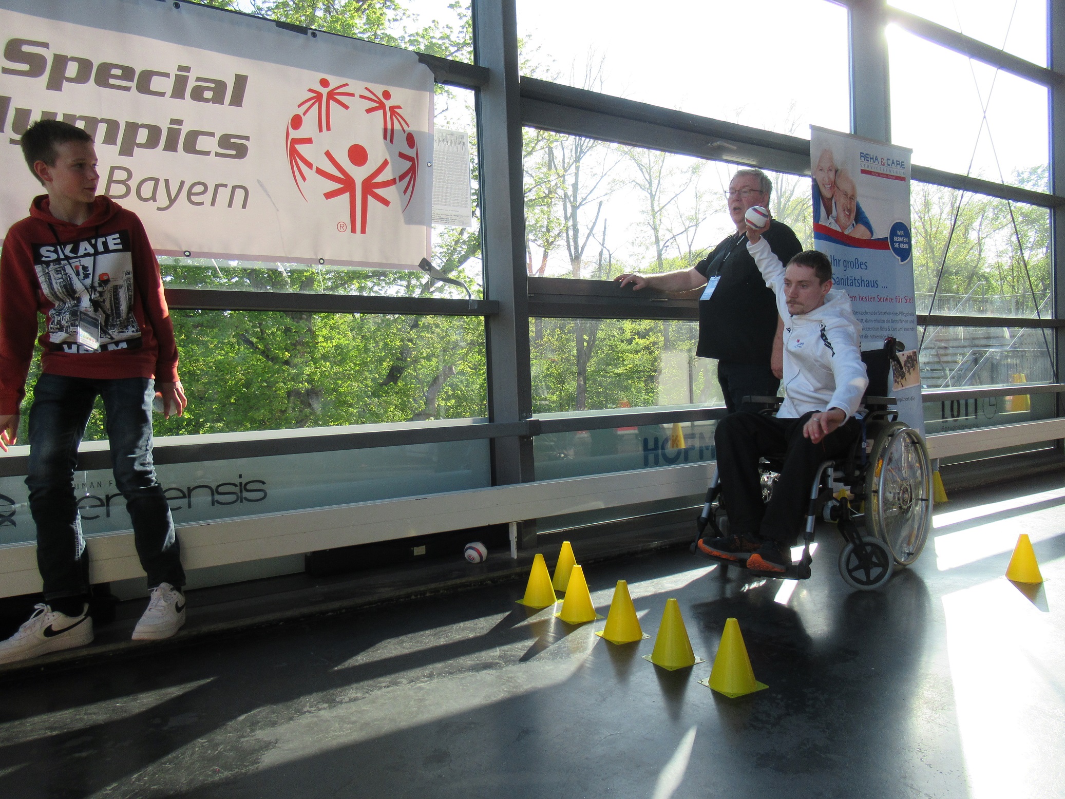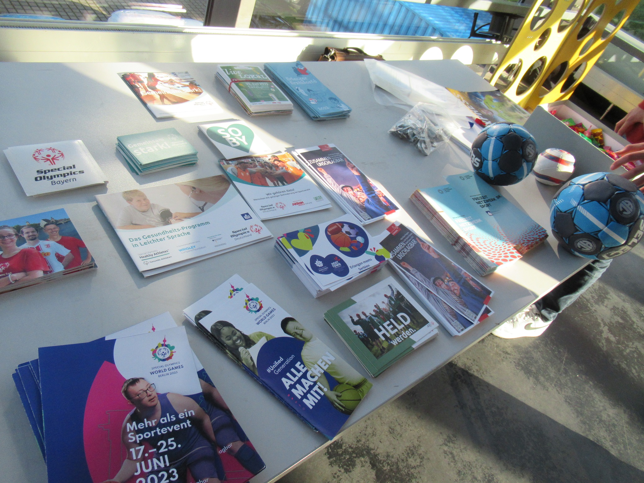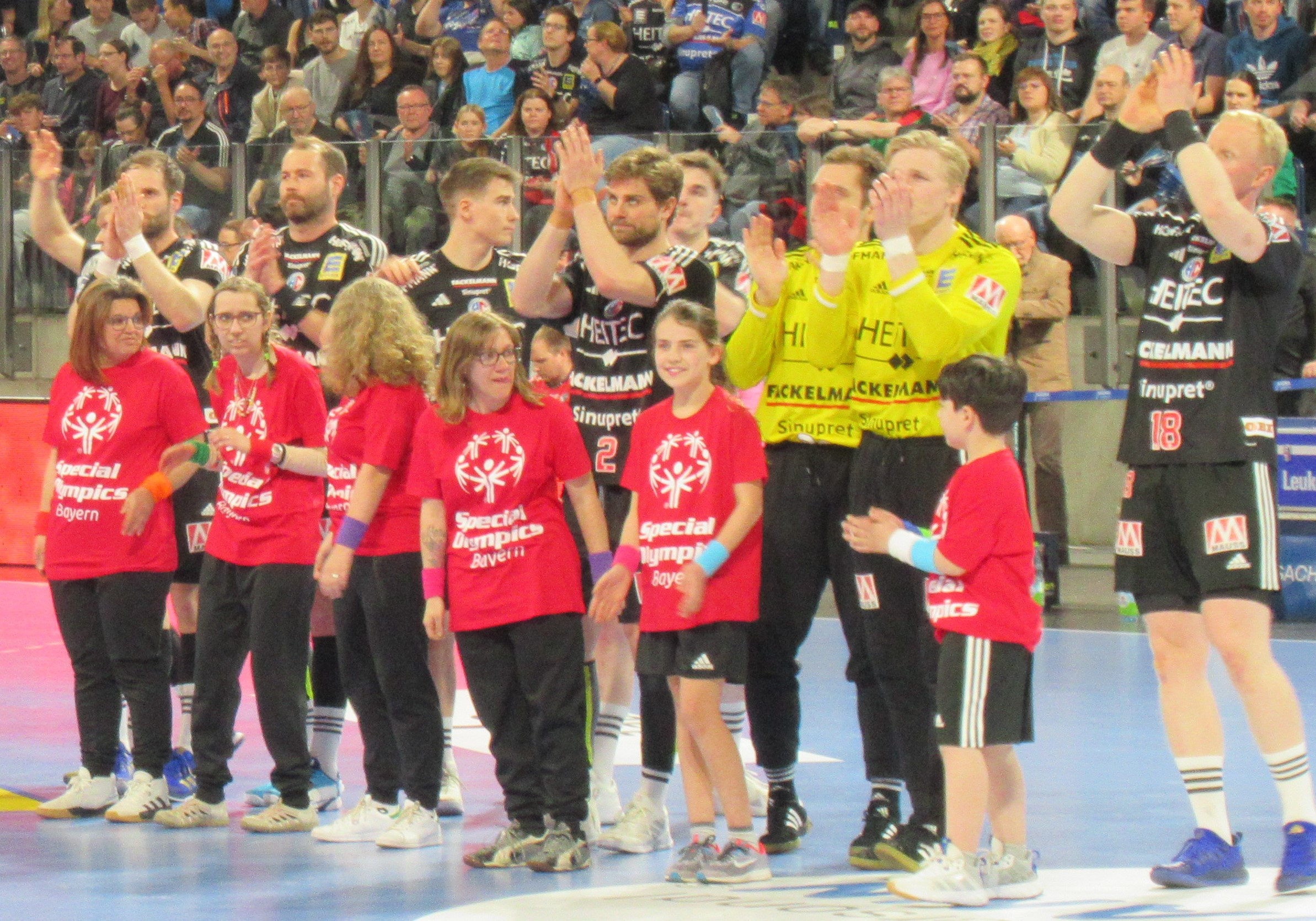 Beim Spiel HC Erlangen - SC Magdeburg war vieles inklusiv: Auf einer Aktionsfläche gab es neben spannenden Infoständen einen Handball-Rollstuhlparcours zum mitmachen. Außerdem konnte man dort das Special Olympics Handballteam kennen lernen. Auch rund um das Spiel war an alle gedacht: Kinder mit Beeinträchtigung waren beim Einlauf der Spieler dabei, eine Gebärdendolmetscherin übersetzte und es wurde für die Special Olympics World Games und das Host Town Program geworben.