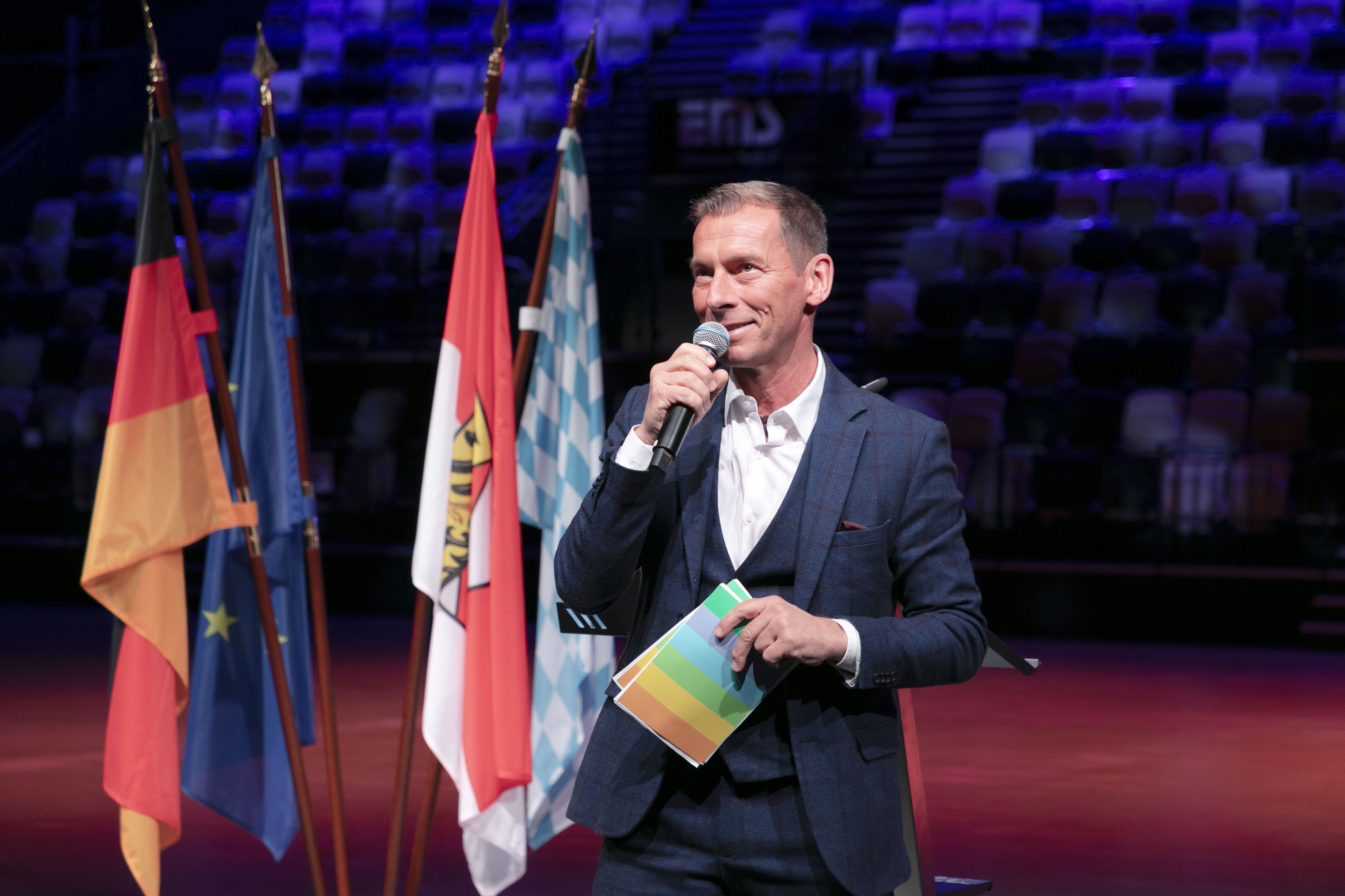 Auch der Präsident des Bayerischen Landes-Sportverbands, Jörg Ammon, gratulierte dem gesamten Team des SportService in einem kurzen Grußwort zum 100. Geburtstag.