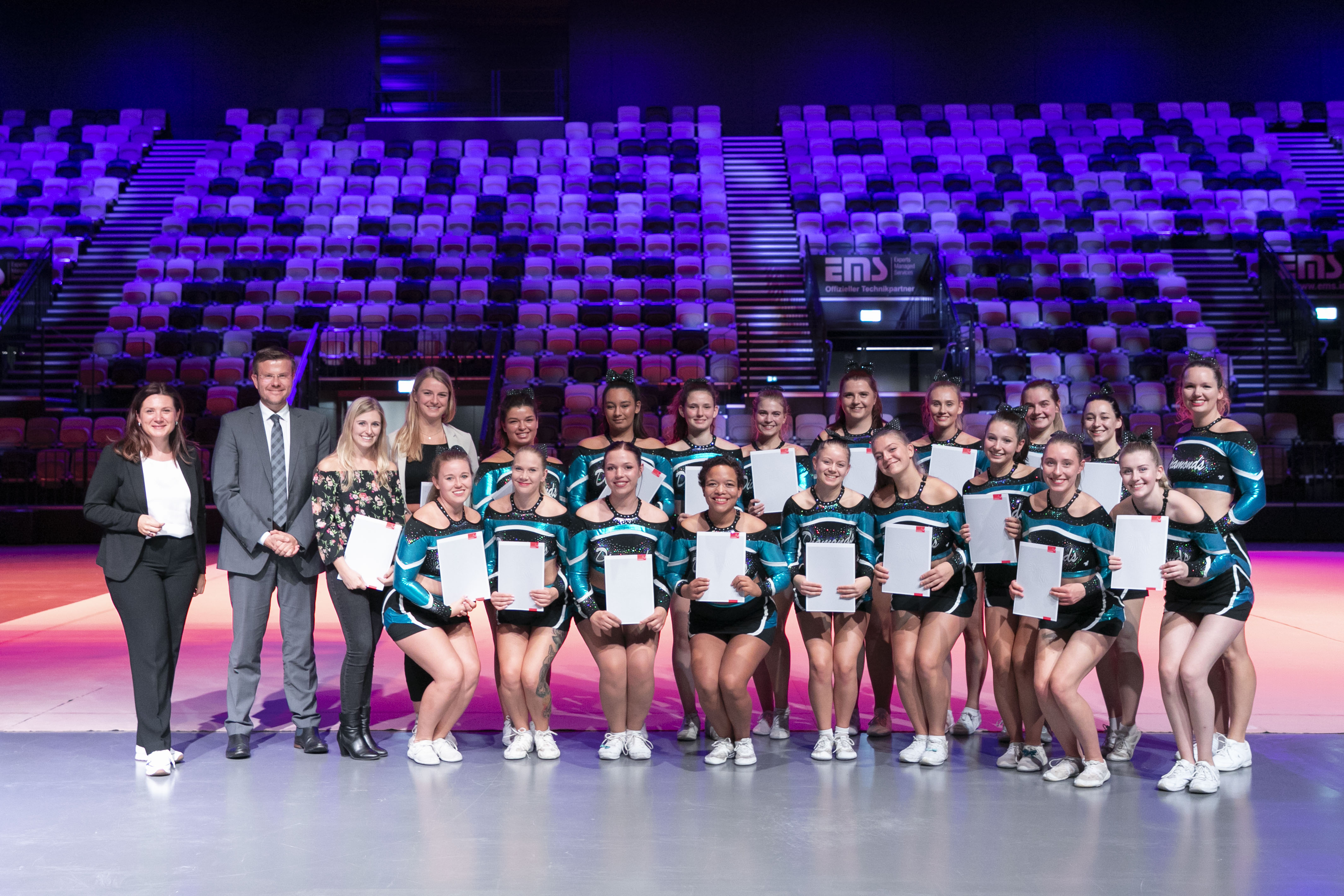 - Blue Diamonds, Cheerleader der DJK Falke: Teilnahme als beste deutsche Seniormannschaft bei der internationalen Meisterschaft 2020 in Los Angeles
