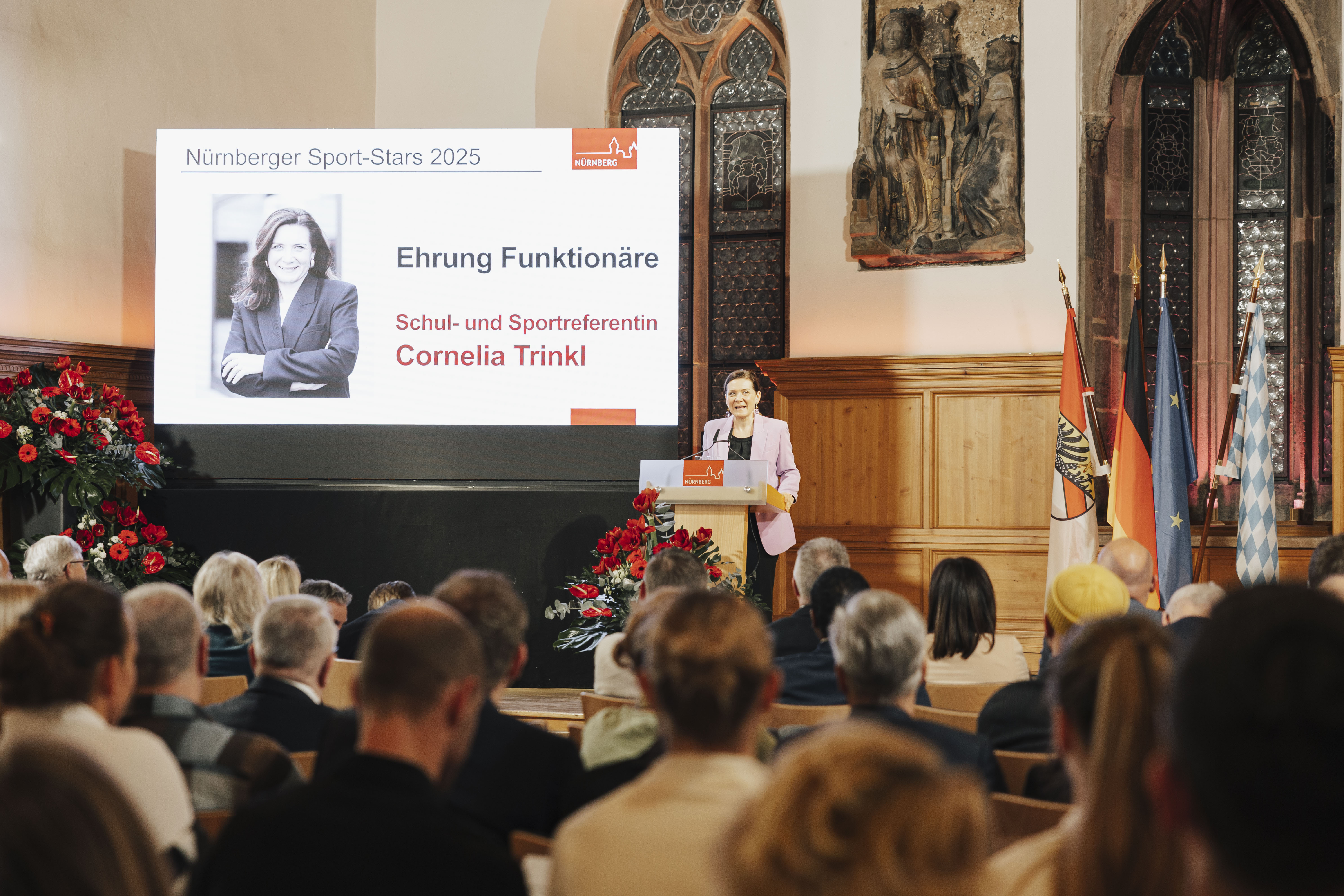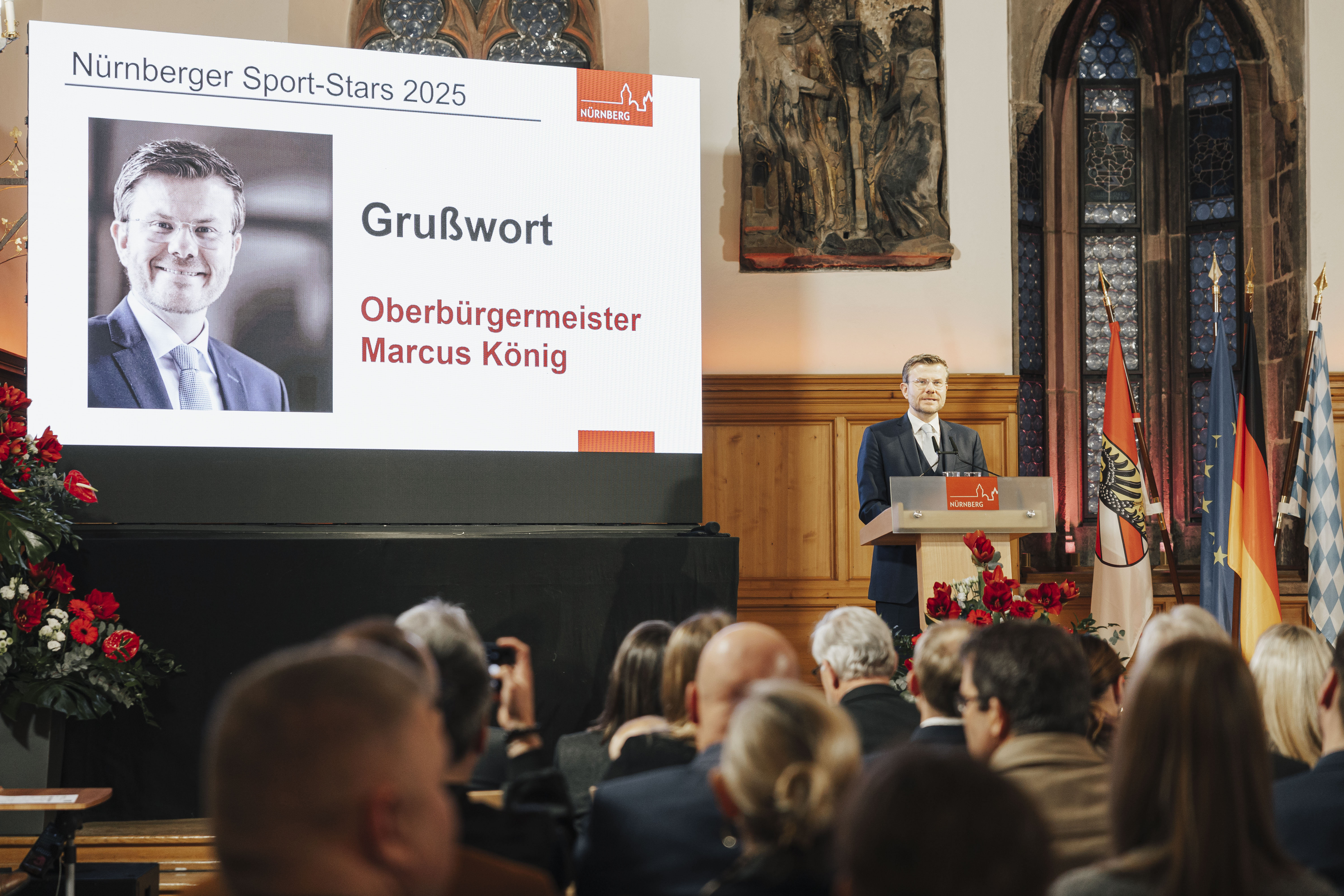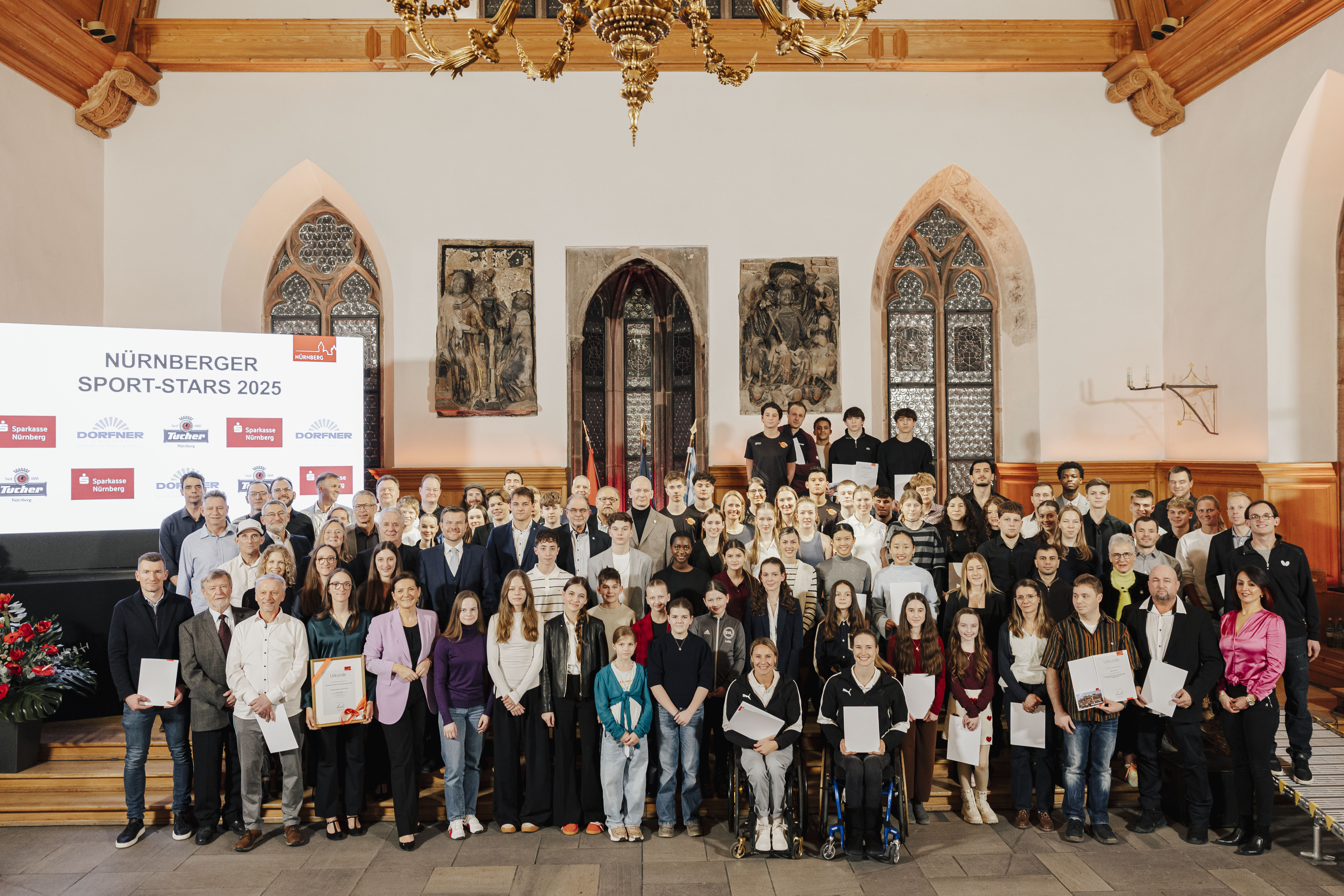 Im Historischen Rathaussaal ehrte die Stadt ihre erfolgreichsten Athletinnen, Athleten, Trainerinnen und Trainer des Jahres 2025. Oberbürgermeister Marcus König und Sportreferentin Cornelia Trinkl zeichneten insgesamt 160 Sportlerinnen und Sportler, sieben Trainerinnen und Trainer sowie vier Funktionärinnen und Funktionäre als „Nürnberger Sport-Stars 2025“ aus.