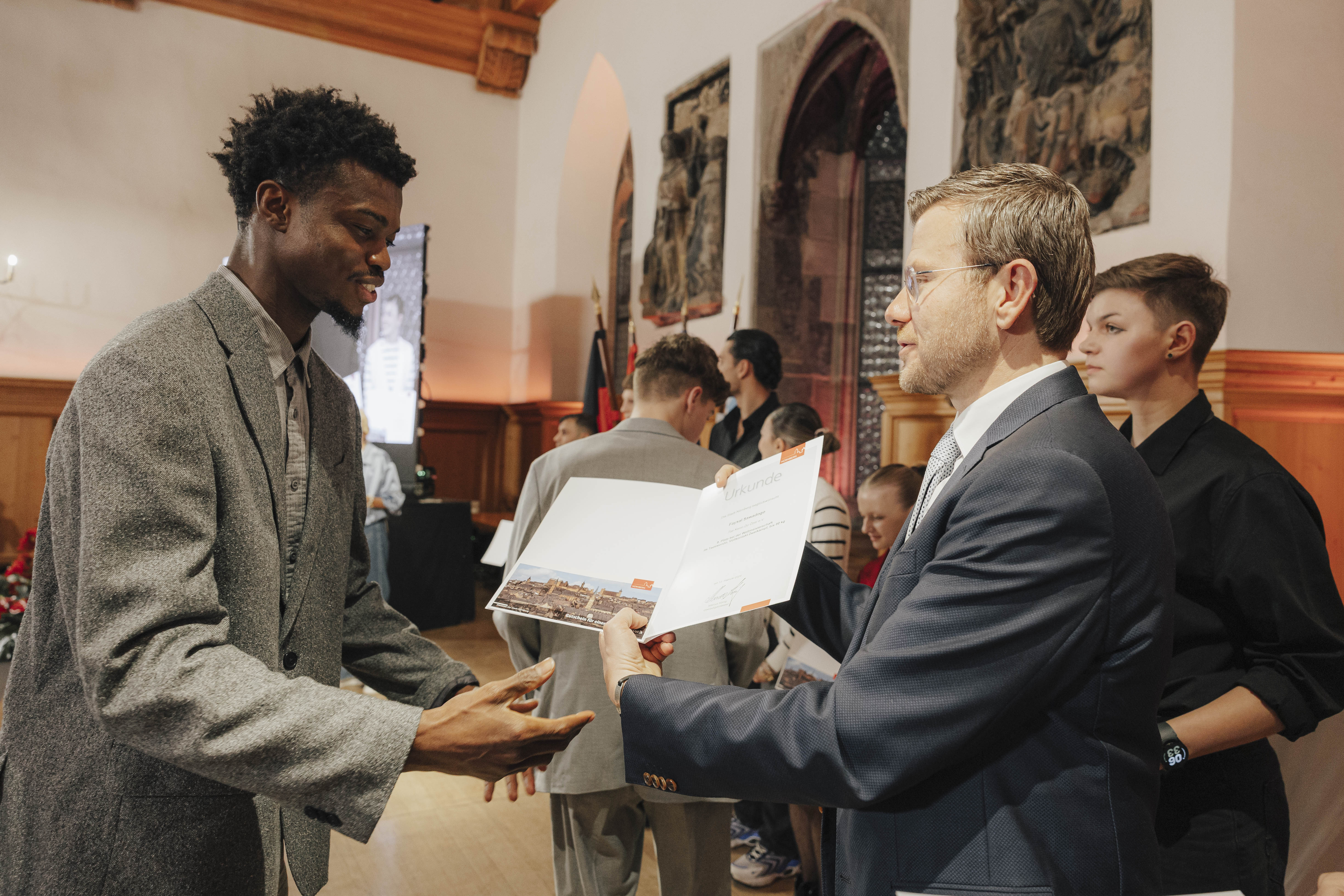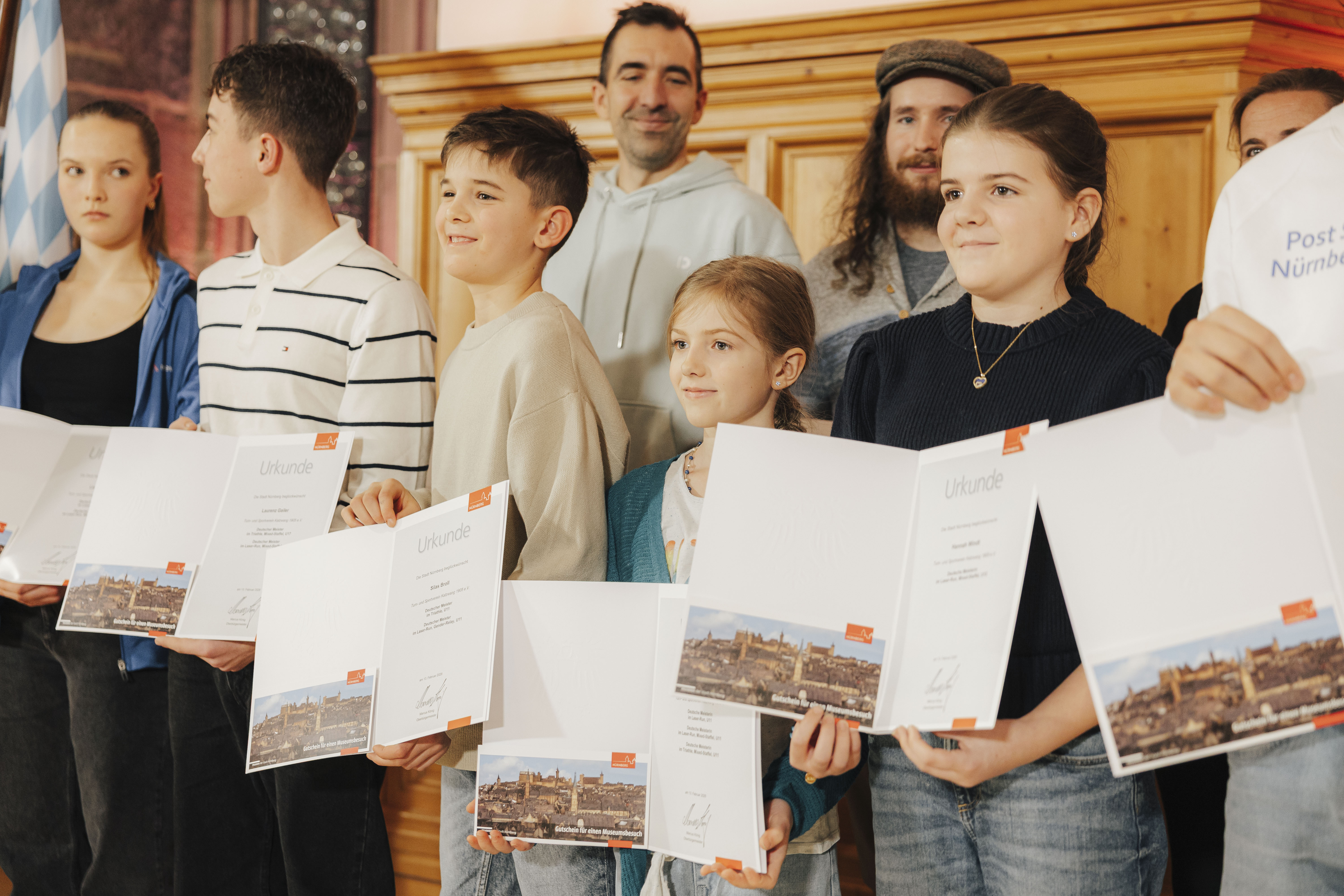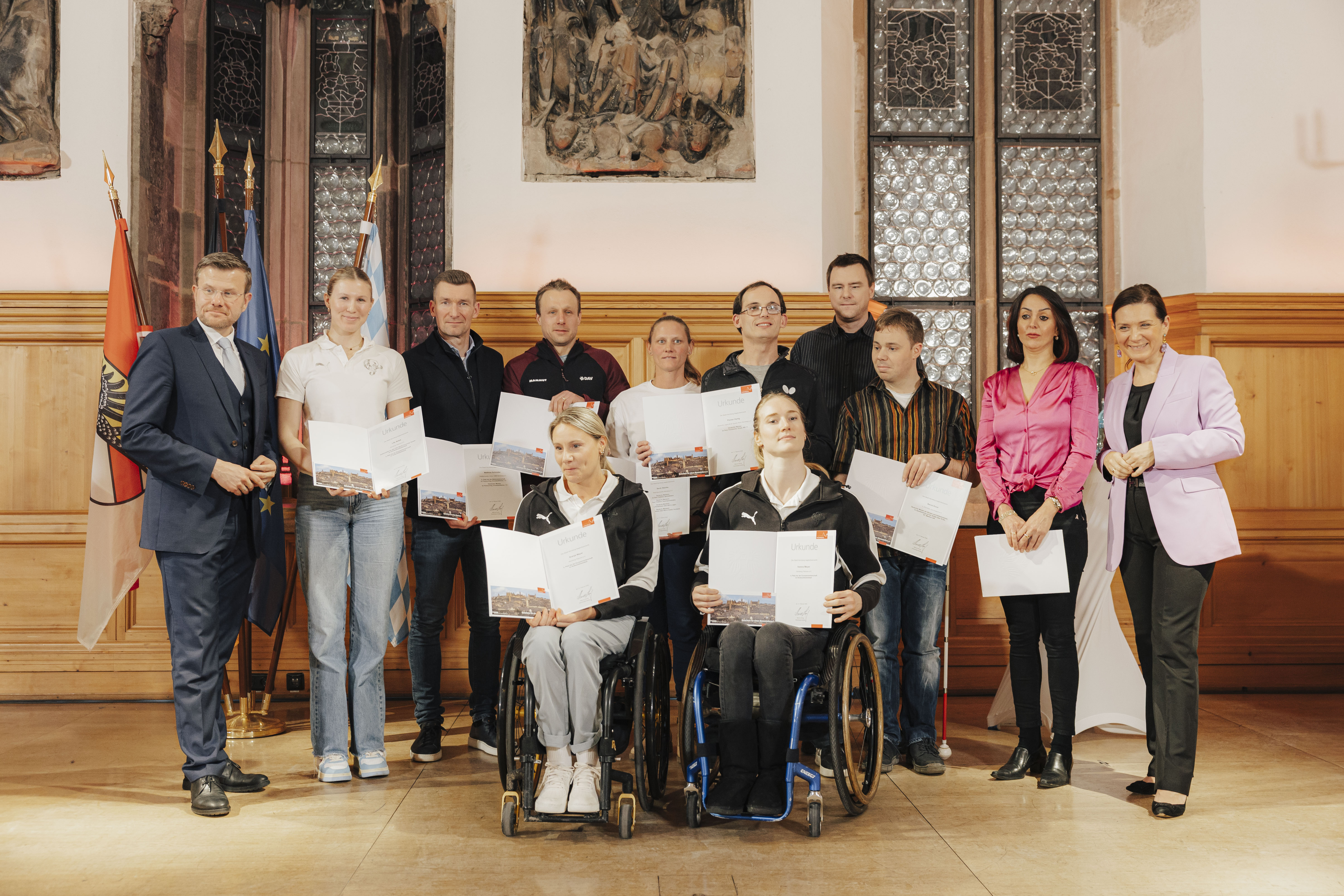 Im Historischen Rathaussaal ehrte die Stadt ihre erfolgreichsten Athletinnen, Athleten, Trainerinnen und Trainer des Jahres 2025. Oberbürgermeister Marcus König und Sportreferentin Cornelia Trinkl zeichneten insgesamt 160 Sportlerinnen und Sportler, sieben Trainerinnen und Trainer sowie vier Funktionärinnen und Funktionäre als „Nürnberger Sport-Stars 2025“ aus.