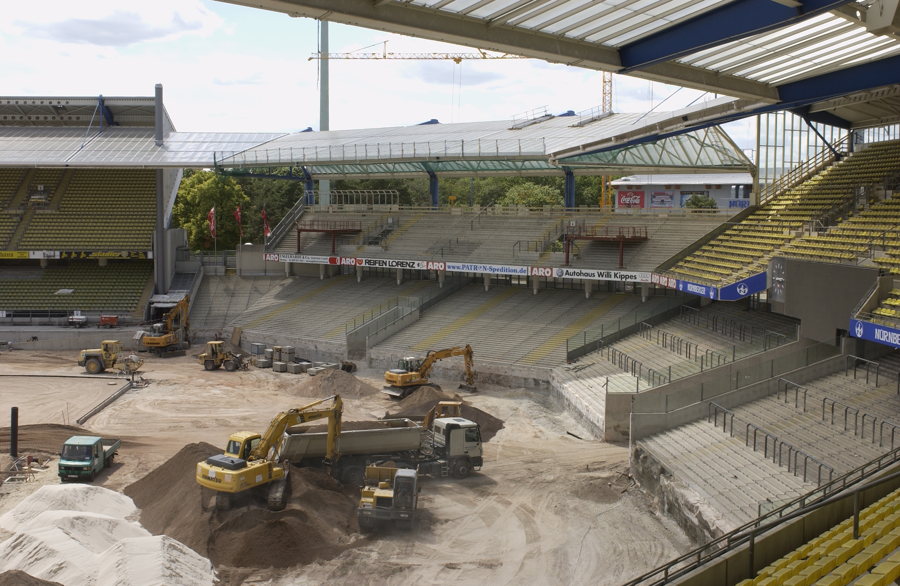 Wenn ein Stadion neu oder umgebaut wird, stellt sich immer eine zentrale organisatorische Frage: Wie und wo können Fußballspiele, Konzerte und andere Veranstaltungen während der Bauzeit stattfinden?