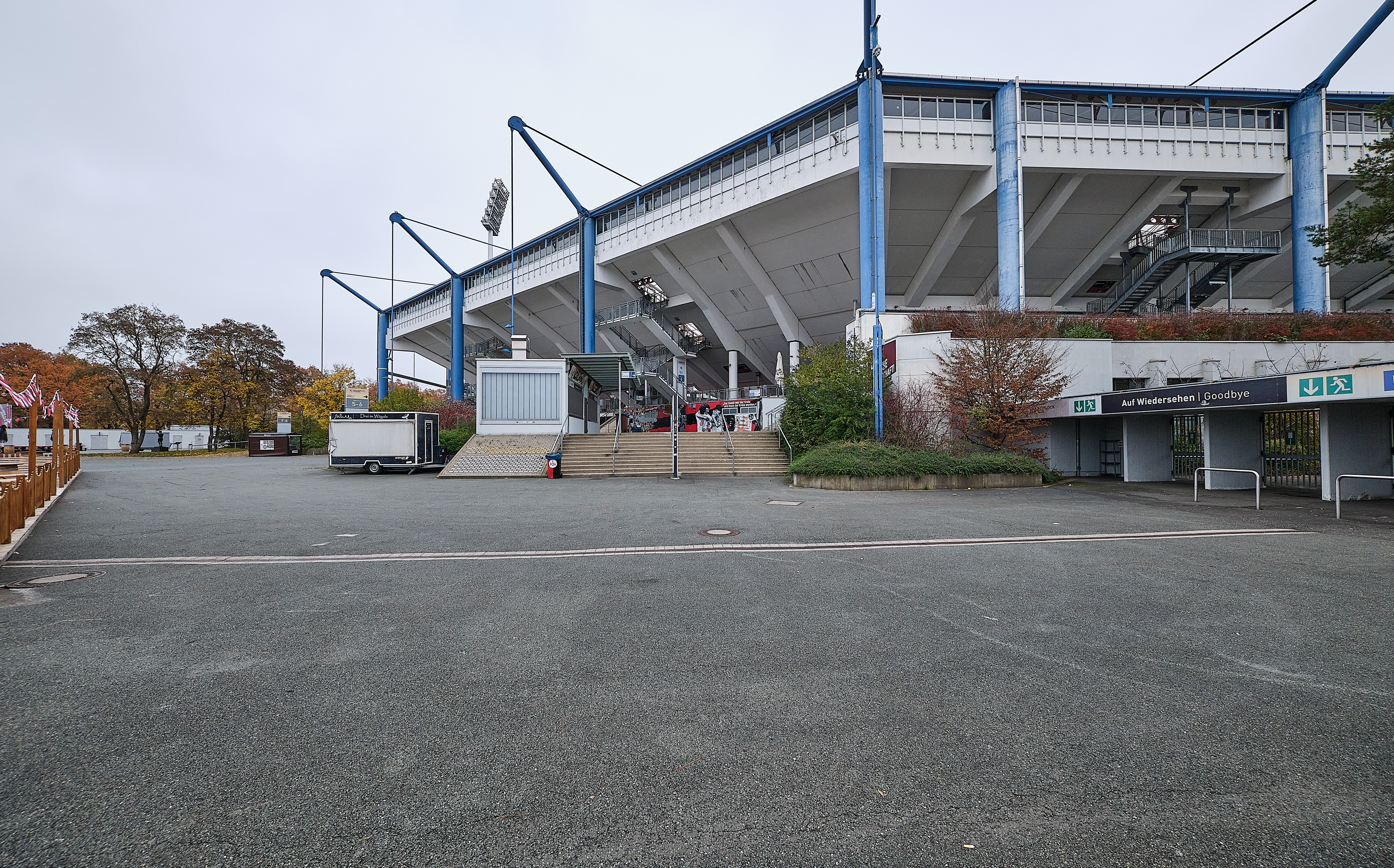 Das Max-Morlock-Stadion besitzt keinen vollständig geschlossenen Umlauf. Der freie Blick auf die Rückseite der Tribünen, auf Beton und Kanten, macht das Stadion als solches erkennbar. Die Konstruktion ist sichtbar, nicht verkleidet – das verleiht ihm eine technische Klarheit, die heute selten geworden ist.