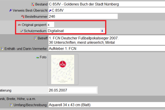 Manche Bestände, manchmal auch einzelne Archivalieneinheiten, dürfen aus konservatorischen Gründen nicht mehr im Original vorgelegt werden, da jede Nutzung die Gefahr in sich birgt, dass die Archivalien in ihrer Substanz geschädigt werden oder bereits vorhandene Schäden sich vergrößern. Zum Teil sind diese gesperrten Archivalien über Schutzmedien benutzbar: in Form von Kopien oder Reproduktionen, über Filme am Mikrofilm-Lesegerät oder als Digitalisate in der Beständedatenbank. Dies gilt auch für bereits digitalisierte Archivalien wie Postkarten, Plakate oder ausgewählte Fotobestände.