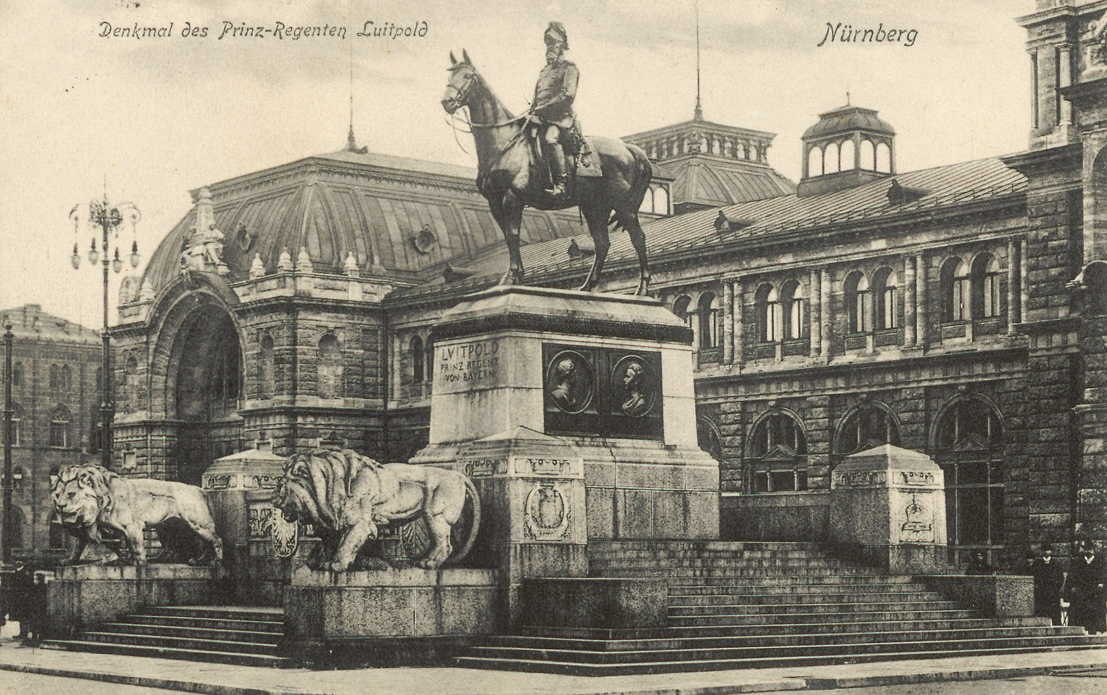 Auf dem Vorplatz des neuen Hauptbahnhofs wird am 12. März 1901 das Prinzregent-Luitpold-Denkmal anlässlich des 80. Geburtstag von Prinzregent Luitpold (1886–1912) enthüllt. Das Reiterstandbild wurde durch den Bildhauer Wilhelm von Rümann (1850–1906) geschaffen und bei Ferdinand von Miller (1842–1929) in München gegossen. Den Sockel errichtete der aus Nürnberg stammende Architekt Paul Pfann (1860–1919), dort waren Porträtmedaillons der vier bayerischen Könige zu sehen. Das Reiterstandbild wurde 1934 als Verkehrshindernis entfernt und im Krieg eingeschmolzen.