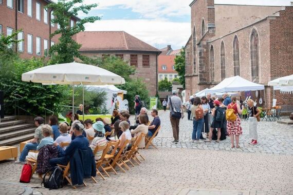 Der textualienmarkt ist ein temporärer Begegnungsort im öffentlichen Raum, mitten im Herzen Nürnbergs. Am Katharinenkloster, zwischen Katharinenruine und Stadtbibliothek, entstehen Oasen der Begegnung und Vielfalt – zum Zuhören, Mitmachen, Verweilen, Schlendern und ins Gespräch kommen. Das Programm ist so vielfältig wie es die Akteurinnen und Akteure, Vereine, Autorinnen und Autoren und Berufsverbände sind. Genau diese gestalten hier die Inhalte und Formate selbst! Der textualienmarkt bringt die regionale Literaturszene zusammen und macht sie als Auftrittsort in all ihren Facetten sichtbar.