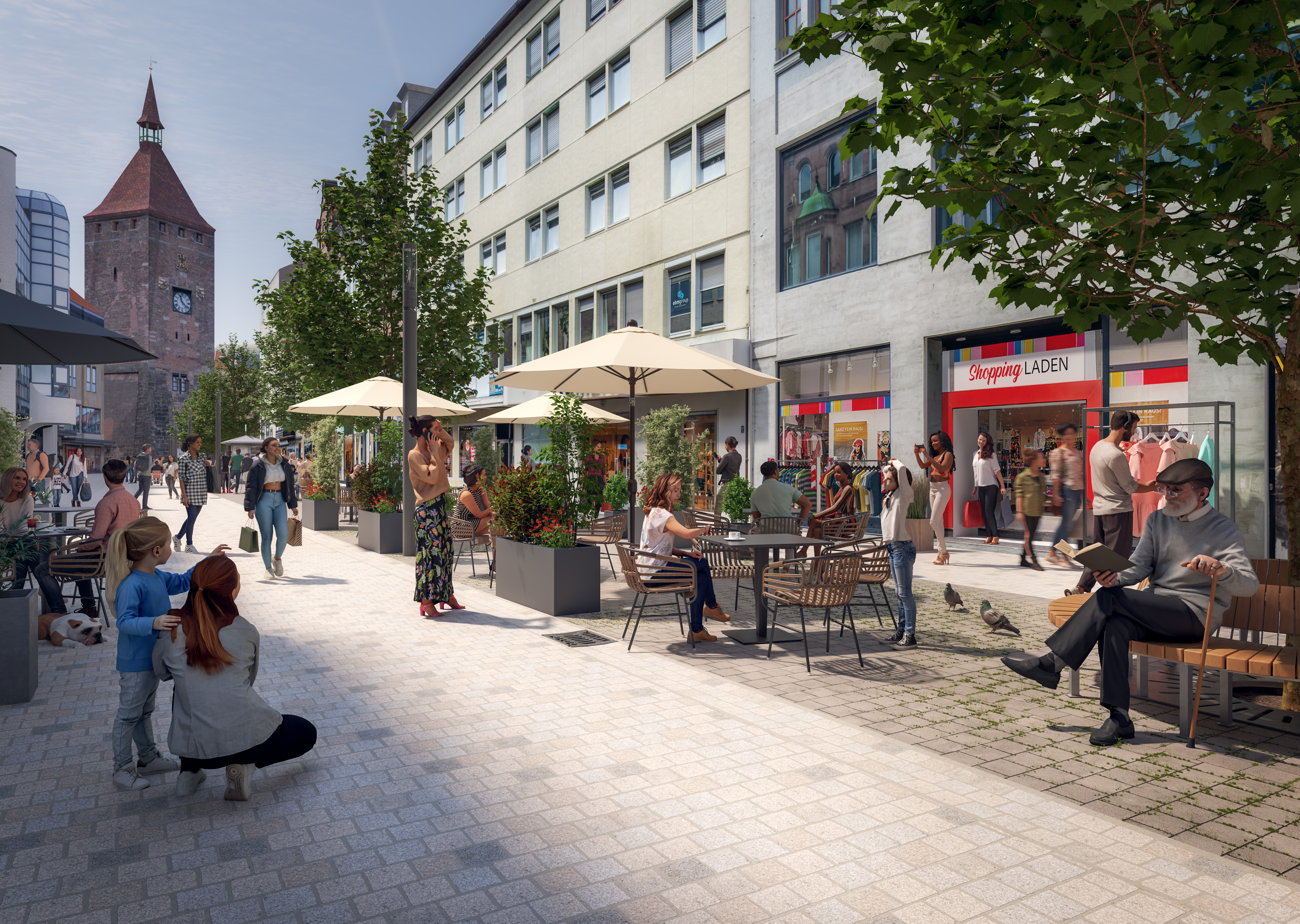 Künftig gibt es in der Breiten Gasse nicht nur ein Einkaufserlebnis, sondern auch mehr Abwechslung für Jung und Alt. Die Umgestaltung ist in drei Bauabschnitte unterteilt. Mit dem ersten Abschnitt zwischen Ludwigsplatz und Färberstraße wurde im Januar 2025 begonnen.