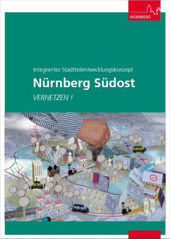 Das integrierte Stadtentwicklungskonzept Nürnberg Südost formuliert Leitgedanken für zukünftige Stadtentwicklungsprozesse und fasst diese in einem "Kompass" zusammen. Ziel ist es die Akteurinnen und Akteure auch weiterhin miteinander zu vernetzen.