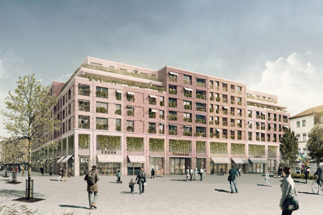 Für den geplanten Neubau hat die Stadt Nürnberg eine Baugenehmigung erteilt. Errichtet werden kann auf dieser Grundlage ein siebengeschossiger Neubau mit folgenden Nutzungen: Im Untergeschoss mit direktem Zugang zur U-Bahn finden künftig kleine Discounter und Fachmärkte ihren Platz. Im Erdgeschoss wird ein Edeka-Supermarkt einziehen. Im ersten Obergeschoss darüber werden Stellplätze für etwa 160 Autos geschaffen. In den weiteren fünf Geschossen sind 220 Wohnungen und ein Kindergarten geplant. Mit dem Eigentümer wurde eine Vereinbarung getroffen, die eine Dach- und Fassadenbegrünung, ein Mobilitätskonzept und einen 50-prozentigen Mindestanteil an familiengerechten Wohnungen vorsieht.