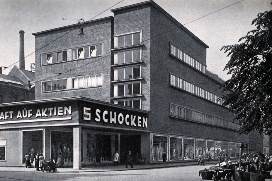 Am 11. Oktober 1926 wurde mit dem Kaufhaus Schocken das erste Kaufhaus in Nürnberg eröffnet. Der Name geht auf die ehemaligen Eigentümer Salman und Simon Schocken zurück. Diese mussten ihren Kaufhauskonzern 1938 zwangsverkaufen, 1939 wurde aus der Schocken AG die Merkur AG und das Kaufhaus in Merkur umbenannt.