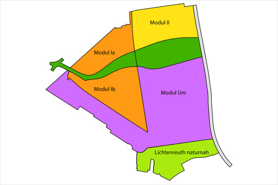 In Modul I entsteht ein Wohnquartier mit Grundschule, Kindertagesstätten und Geschäften zur Nahversorgung. 1.300 Wohnungen im Modul I für 3.300 Menschen sind bereits genehmigt, weitere werden hinzukommen. Insgesamt sollen hier bis zu 6.000 Personen wohnen. Die erste Kita mit 25 Krippen- und 75 Kindergartenplätzen soll voraussichtlich 2026 ihre Pforten öffnen. Seit der Eröffnung des westlichen Teils des „Lichtenreuther Parks“ im Mai 2025 steht den ersten Bewohnerinnen und Bewohnern vor Ort bereits ein wichtiger Baustein der sozialen Infrastruktur zur Verfügung. Der zweite grüne Teil des Moduls I „Lichtenreuth naturnah” am Südrand des Areals, angrenzend an den Rangierbahnhof, bleibt naturnah erhalten und dient somit als Ausgleichsfläche. Auch für die Betreuung von Grundschulkindern wird im Stadtteil künftig gesorgt sein. Der Neubau einer Grundschule für 500 Kinder als Kombieinrichtung mit Ganztagsbetreuung am nördlichen Rand der Fläche ist planerisch gesichert.