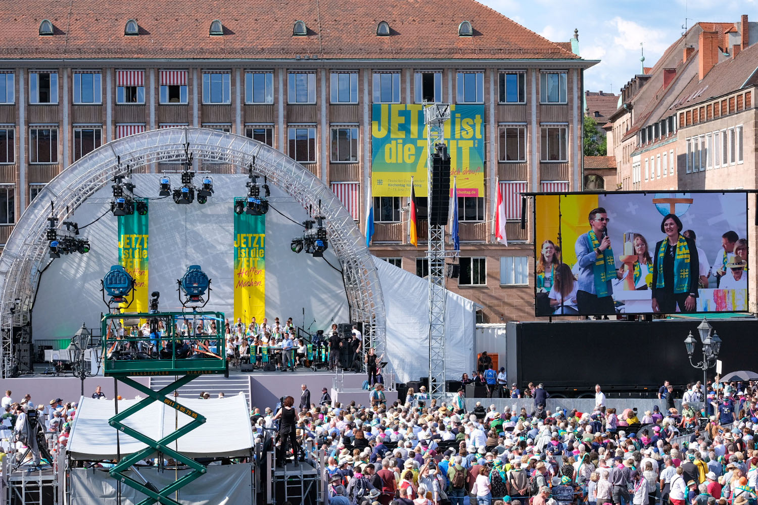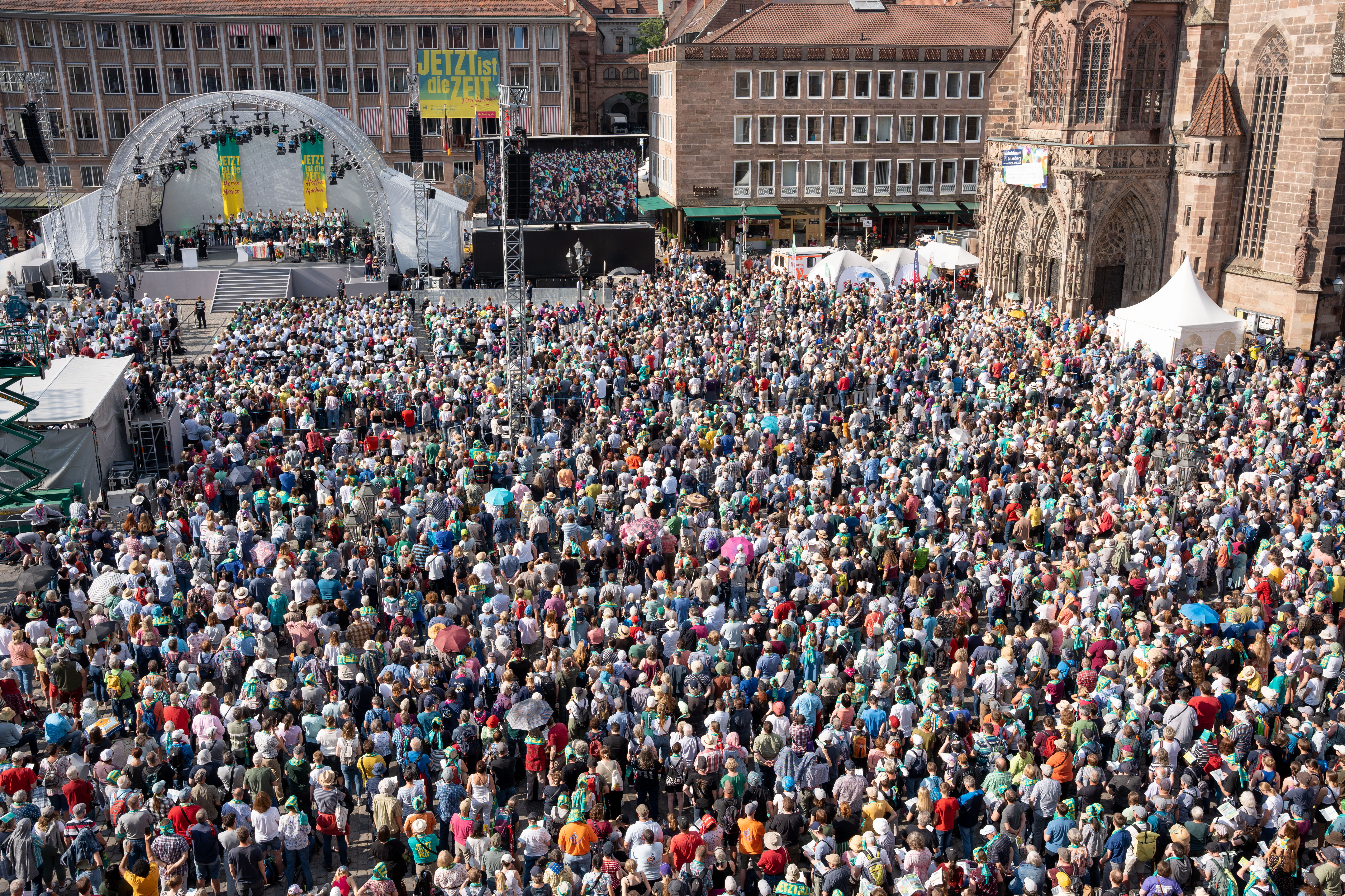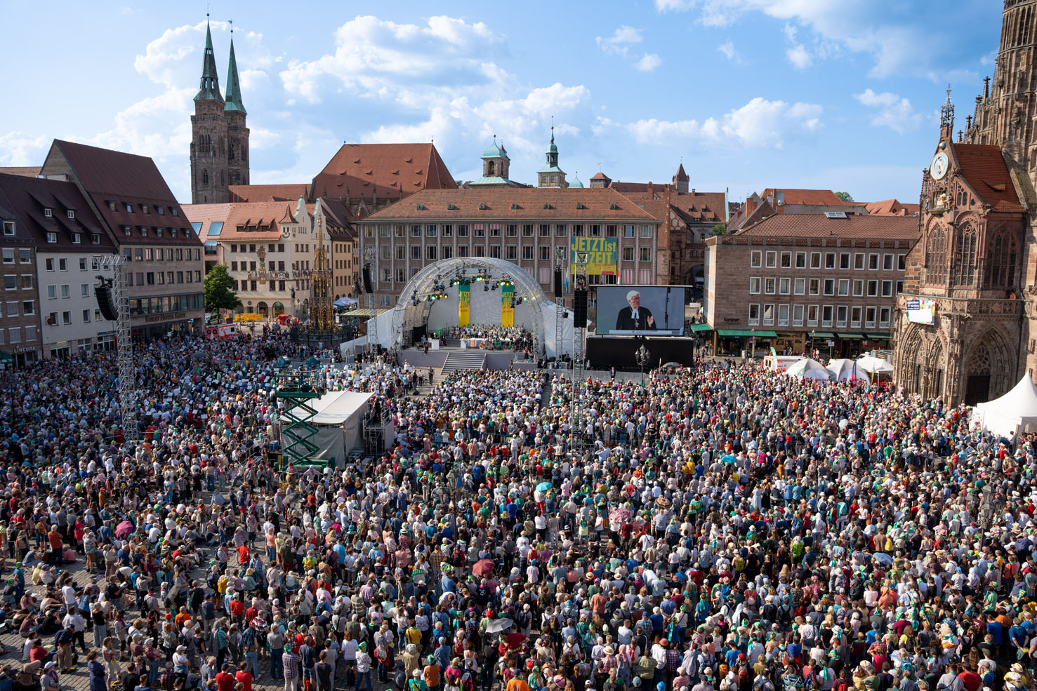 Singen, beten, tanzen, diskutieren, innehalten, zuhören: Nürnberg war fünf Tage lang das bundesdeutsche Zentrum für den Diskurs aktueller gesellschaftspolitischer und religiöser Themen. Viele Vertreter aus Politik, Kirche, Wirtschaft, Justiz und Gesellschaft haben den 38. Deutschen Evangelischen Kirchentag zu einem offenen und fairen Austausch ihrer teils sehr konträren Positionen genutzt. Die Stadt zieht eine rundum positive Bilanz der friedlichen Großveranstaltung – mit teils über 130.000 Besuchern wie am „Abend der Begegnung“ gleich zum Auftakt.