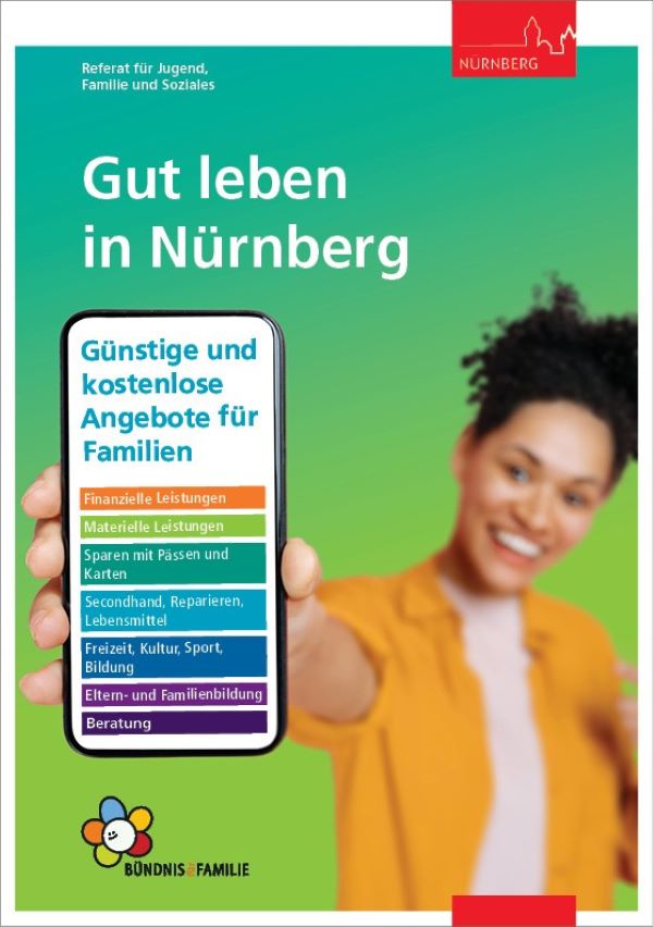 Die Broschüre „Gut leben in Nürnberg“ des Bündnis für Familien umfasst über 200 günstige und kostenlose Angebote für Familien. Vom Second-Hand-Laden über günstige Freizeit- und Bildungsangebote bis zur Energieberatung ist für alle etwas dabei.