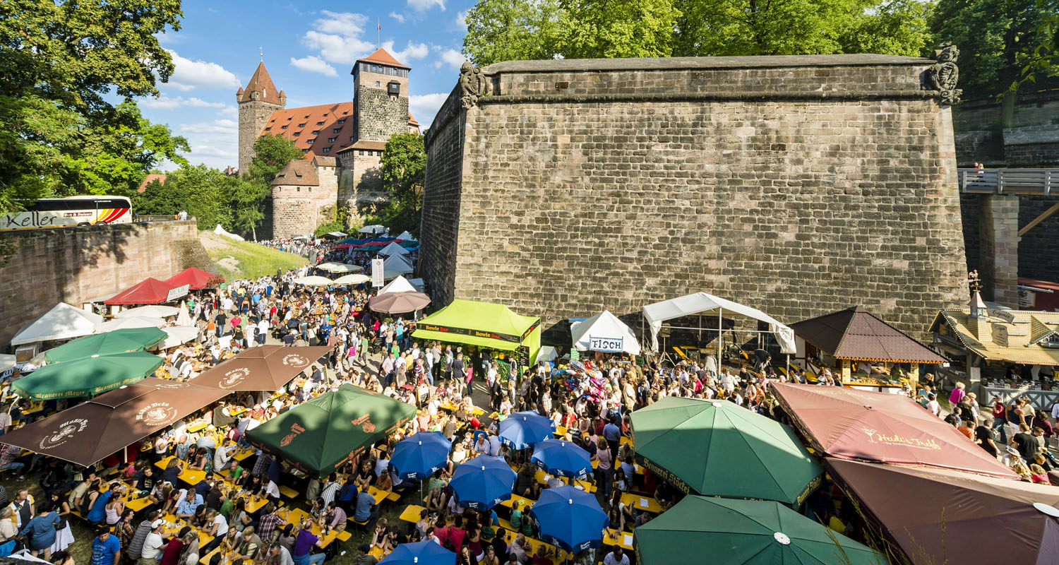 Mehr als 40 fränkische Brauereien präsentieren rund 100 Biersorten im stimmungsvollen Burggraben – das Fränkische Bierfest ist längst ein Klassiker im Nürnberger Veranstaltungskalender.