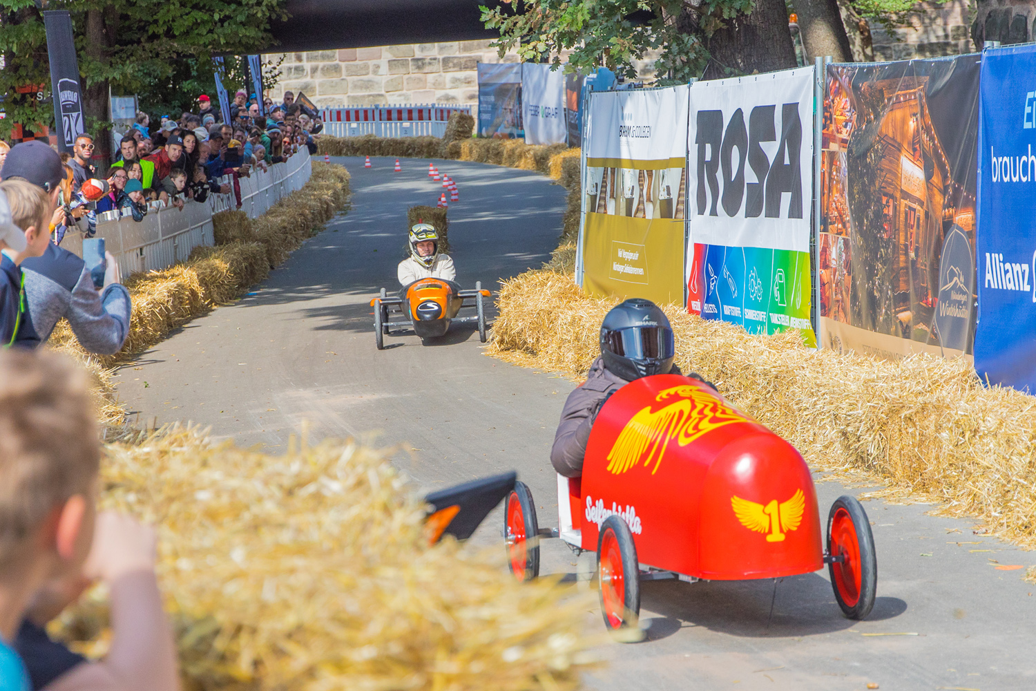 Rasante Fahrten, schräge Kisten: Beim Seifenkistenrennen geht es um Tempo und Kreativität. Die Kisten sausen durch den Burggraben vom Tiergärtnertor bis zum Hallertor.