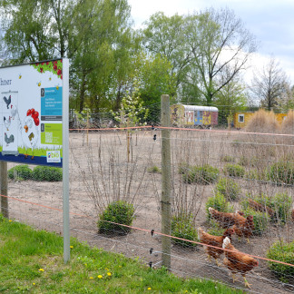 In den nächsten beiden Jahren wird der Gartenbaubetrieb zur Natur-Erlebnis-Gärtnerei umgestaltet. Führungen übers Gelände, einen Aussichtshügel und einen Hühner-Lehrpfad gibt es bereits. Vor allem Kindergärten, Schulen und Jugendgruppen stehen im Fokus der Planungen. In Mitmachgärten, beim Hühnergehege und der Schafherde, die es bald geben soll, lernen Stadtkinder, was früher Alltag war: Wie Pastinaken wachsen, dass Schafswolle ölig und rau ist, und warum der Hahn immer als letztes frisst.