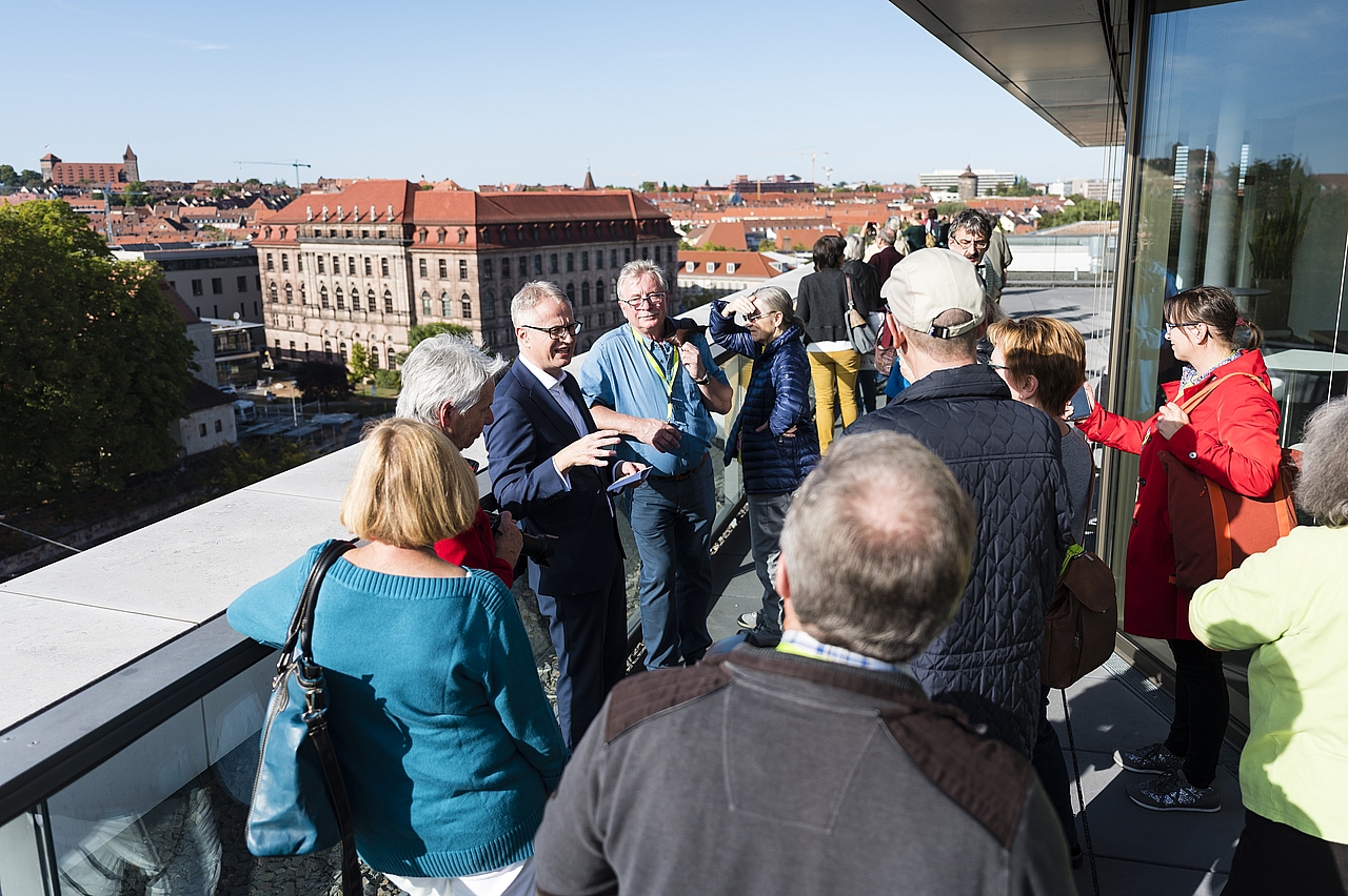 Passend zum Motto ludt Deutschlands größter Führungsmarathon 2025 dazu ein, Nürnberg und Fürth aus neuen „Perspektiven“ zu erleben. Ob Sichtweise, Standpunkt, Ausblick oder Zukunftsvision – das Motto öffnete Türen zu überraschenden Orten und spannenden Geschichten. Die Besucher*innen konnten entdecken, was sich hinter bekannten Fassaden verbirgt, und sich an Orte führen lassen, die sonst verborgen bleiben. Vom Christkindlesbalkon zur Pop-up-Sternwarte, von der historischen Krankenhausapotheke bis zum Kaufhof, auf den Dächern der Stadt oder tief im Untergrund – es boten sich unzählige Möglichkeiten, Nürnberg und Fürth aus neuen Blickwinkeln zu sehen.