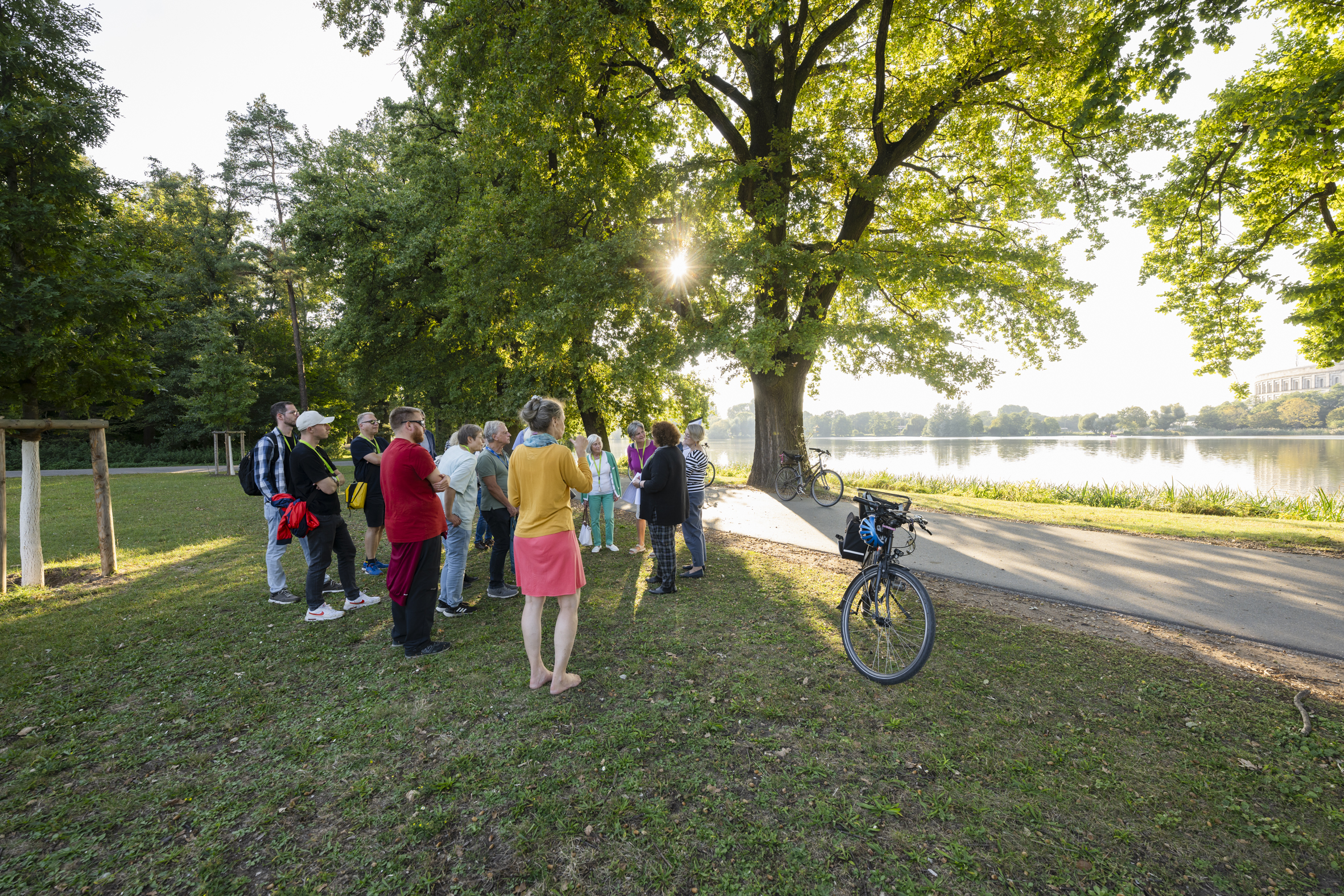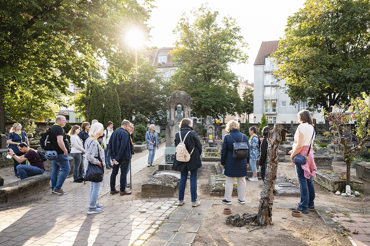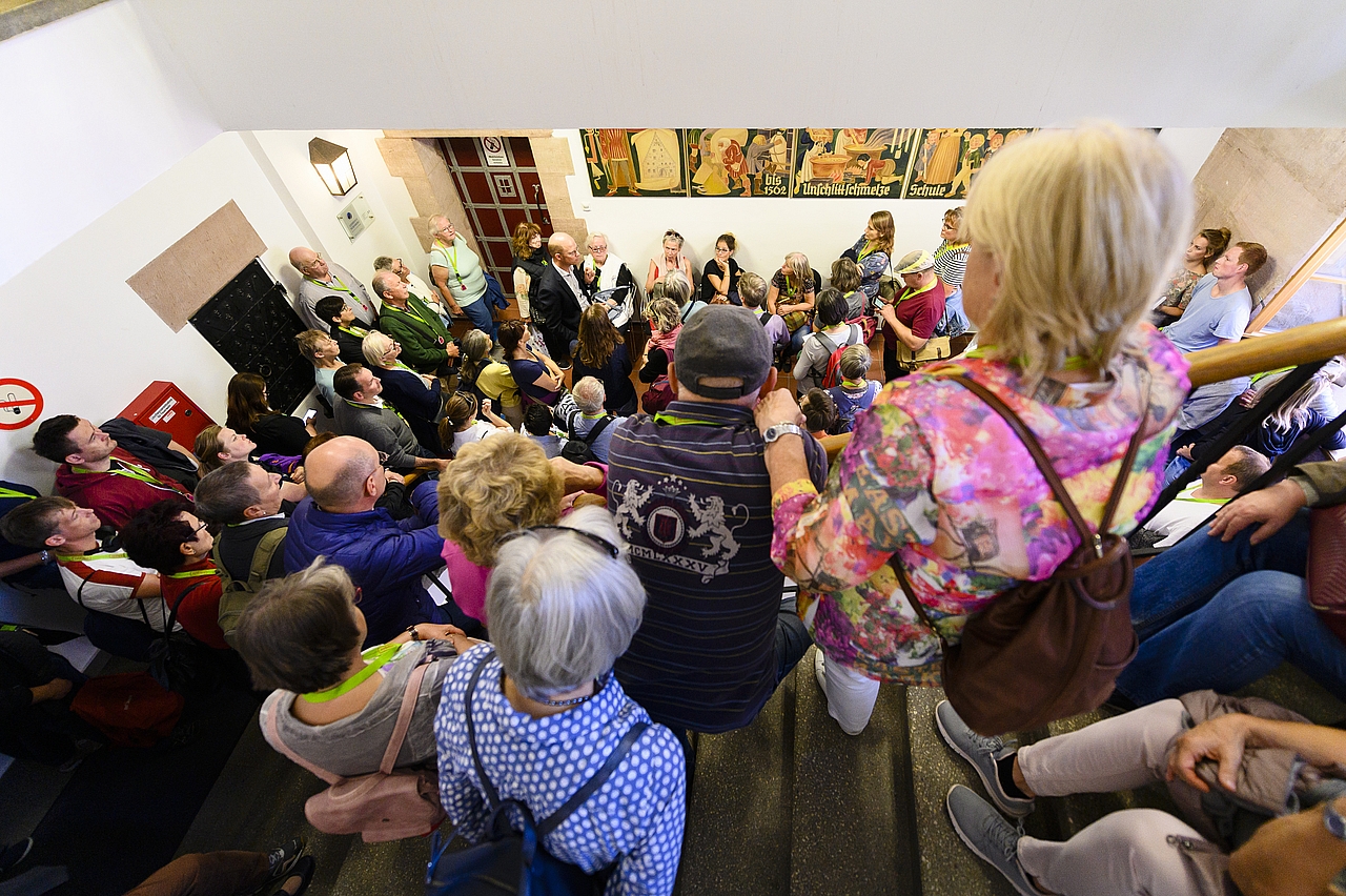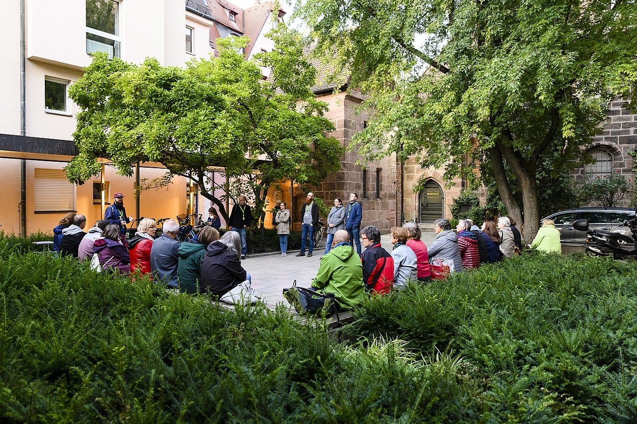 2022 ließen sich die Stadt(ver)führungen vom Motto „Verwandlungen“ leiten, zeigten Gebäude und Stadtviertel, Sitten und Gebräuche im Wandel der Zeit, stellten Verwandlungskünstler*innen und -prozesse vor. Mit anderen Worten: Die Stadt(ver)führungen verwandelten Nürnberg und Fürth mit 1150 Führungen drei Tage lang in einen spannenden und entdeckungsreichen Bildungspark. Dabei führten die Wege unter anderem ins historische Grand Hotel und in den Justizpalast, ins älteste Fachwerkhaus Nürnbergs und zu jungem Gemüse im Knoblauchsland, zu Gin-Verkostung und erotischer Küche, zu lost Places im Keller der Meistersingerhalle und in eine wbg-Wohnanlage. Bittere Kakaobohnen verwandelten sich in süße Pralinen, ein Militärgelände in ein Wohnquartier und brauner Ackerboden in ein grünes Pflanzenmeer: Verwandlungen der natürlichen, menschengemachten, vielleicht auch unerklärlichen Art standen vom 16. bis 18. September im Zentrum der Stadt(ver)führungen.