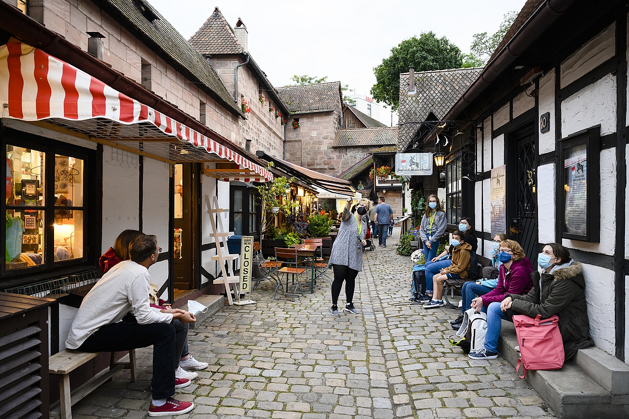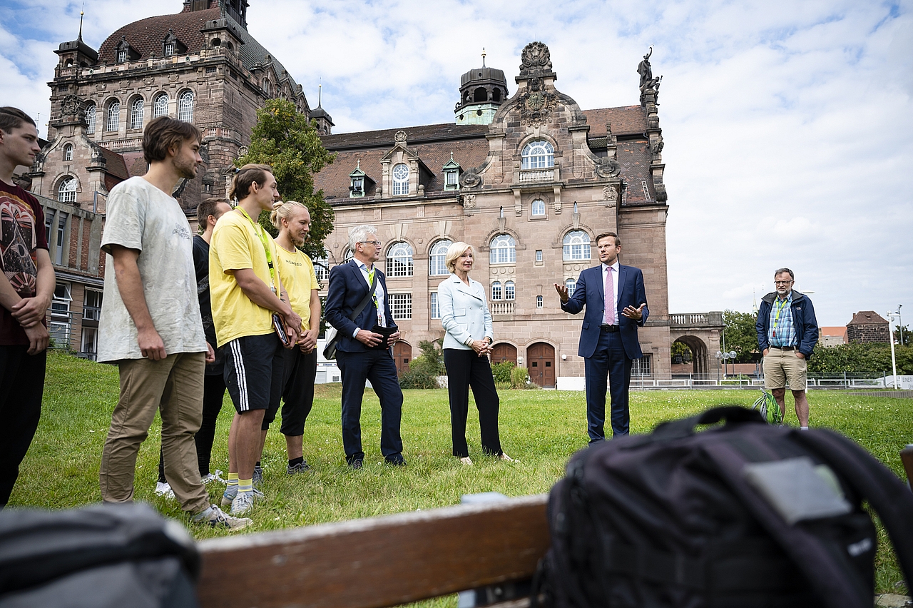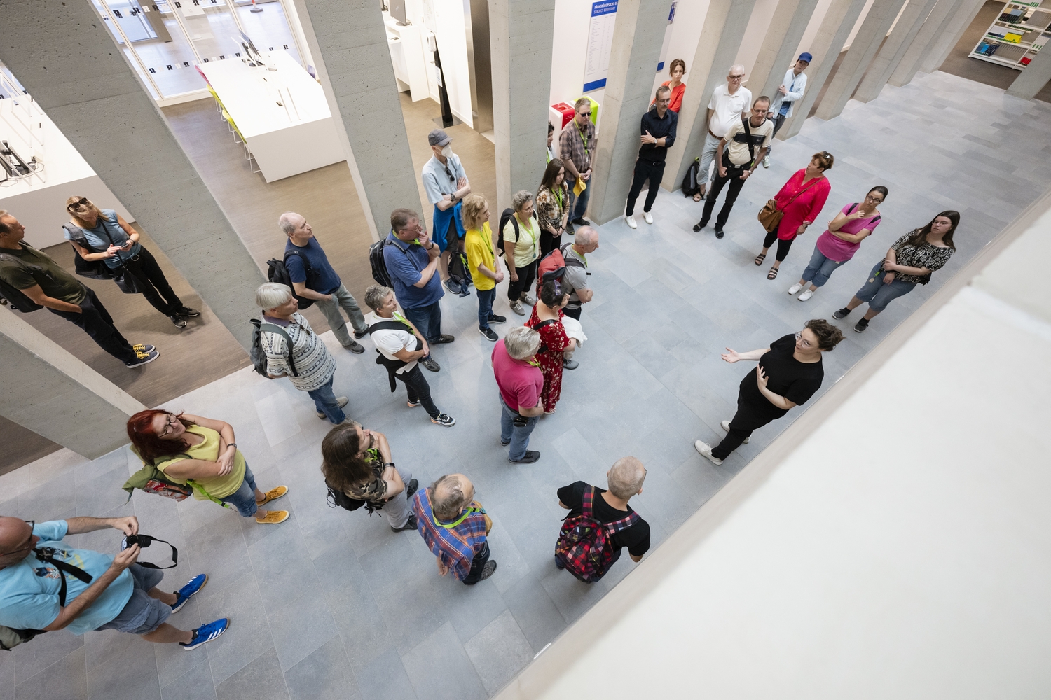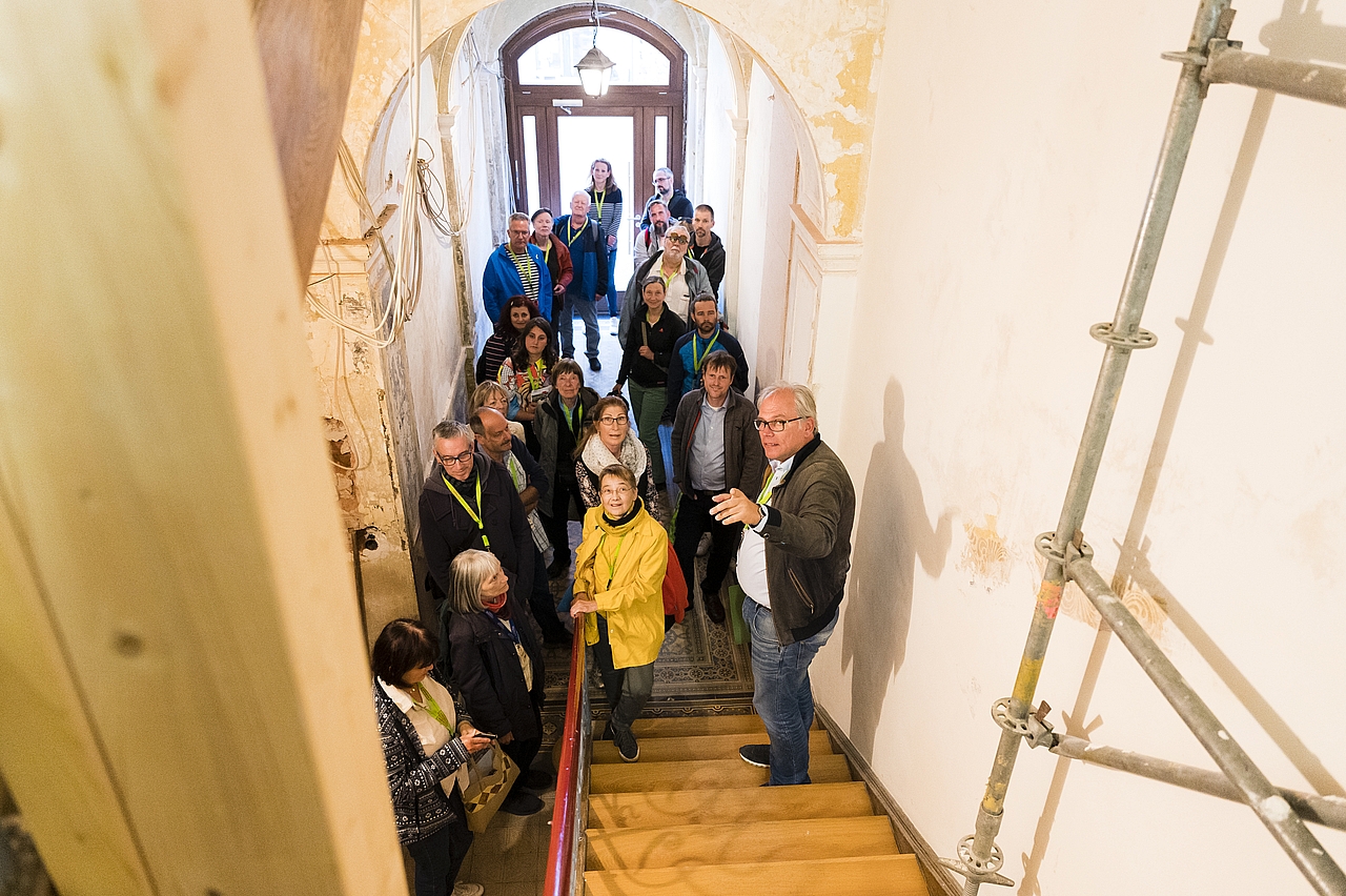 2022 ließen sich die Stadt(ver)führungen vom Motto „Verwandlungen“ leiten, zeigten Gebäude und Stadtviertel, Sitten und Gebräuche im Wandel der Zeit, stellten Verwandlungskünstler*innen und -prozesse vor. Mit anderen Worten: Die Stadt(ver)führungen verwandelten Nürnberg und Fürth mit 1150 Führungen drei Tage lang in einen spannenden und entdeckungsreichen Bildungspark. Dabei führten die Wege unter anderem ins historische Grand Hotel und in den Justizpalast, ins älteste Fachwerkhaus Nürnbergs und zu jungem Gemüse im Knoblauchsland, zu Gin-Verkostung und erotischer Küche, zu lost Places im Keller der Meistersingerhalle und in eine wbg-Wohnanlage. Bittere Kakaobohnen verwandelten sich in süße Pralinen, ein Militärgelände in ein Wohnquartier und brauner Ackerboden in ein grünes Pflanzenmeer: Verwandlungen der natürlichen, menschengemachten, vielleicht auch unerklärlichen Art standen vom 16. bis 18. September im Zentrum der Stadt(ver)führungen.