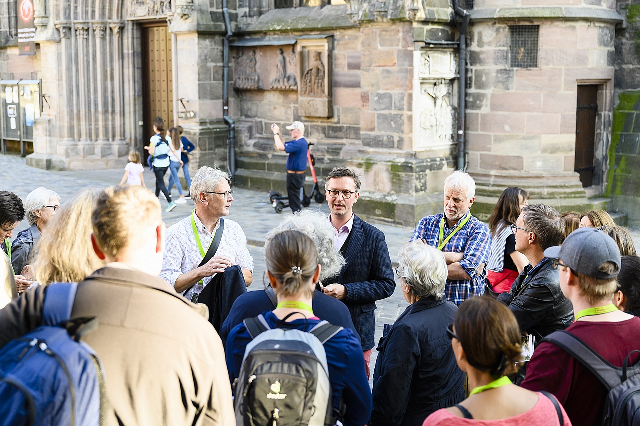 Unter dem Motto "Wegweiser" boten die Stadt(ver)führungen vom 17. bis 19. September mit über 1000 Führungen spannende Ein- und Ausblicke in Nürnberg und Fürth. Über 350 Stadt(ver)führerinnen und Stadt(ver)führer gaben Einblicke in geographische, moralische, ethische, akustische, optische, nachhaltige, politische, historische, astronomische oder psychologische Orientierungshilfen. Die Bandbreite der 534 unterschiedlichen Themen erstreckte sich von Altstadtrundgängen, interaktiven Audiowalks und DIY-Workshops über Baustellenführungen bis hin zu Fahrradtouren. Die Programminhalte widmeten sich wegweisenden Persönlichkeiten, Visionärinnen und Wegbereitern, berühmten und in Vergessenheit geratenen Wissenschaftlerinnen, Philosophen und Kunstschaffenden sowie Albrecht Dürer anlässlich seines 550. Geburtstags.