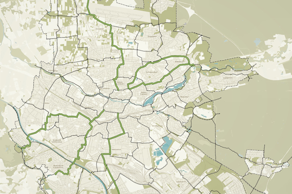 Im Rahmen des Masterplans Freiraum werden wichtige Freiraumverbindungen momentan als eigenständige, durchgängige Routen für Zufußgehende und Radfahrende geplant. Wir nennen sie „Grüne Wege“.