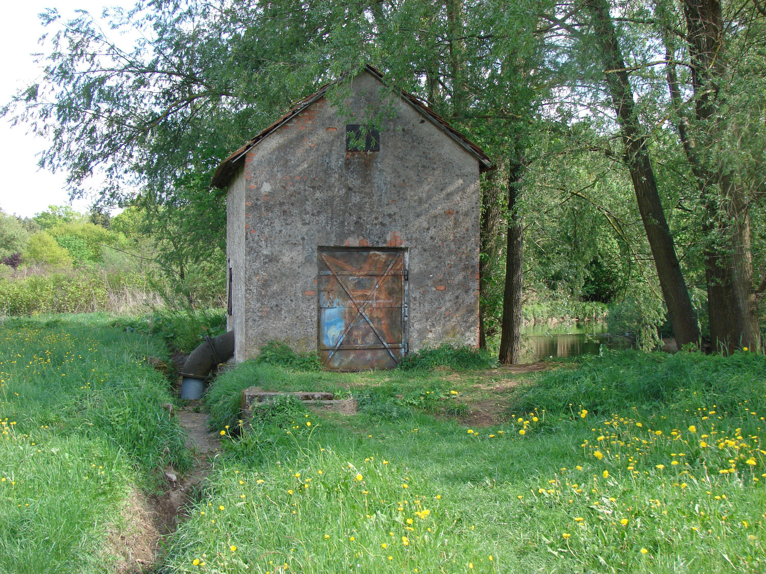 Durch Anstau mit Hilfe von Holzschützen tritt das Wasser über die Grabenschulter und rieselt langsam über die Wiesen und versickert oder fließt zurück ins Gewässer.