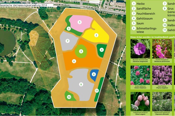 Das Nürnberger Bündnis für Biodiversität begann 2014 den 1.700 qm großen früheren Staudengarten im Norden des Volksparks Marienberg in einen artenreichen, insektenfreundlichen Garten umzugestalten. Das Wissen um den Zusammenhang zwischen Pflanzen und „dazugehörigen“ Insekten wurde in ein Konzept umgesetzt.