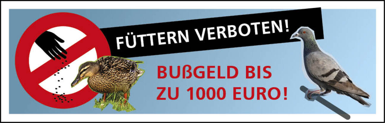 Das Fütterungsverbot gilt auch für Wasservögel und Fische. Es werden nie alle Brotreste von den Tieren aufgenommen. Das Brot sinkt im Wasser zu Boden, verrottet dort, fördert die Algenbildung und verschlechtert die Wasserqualität. Den Tieren wir durch die Fütterung also nichts Gutes getan, sondern ihr natürlicher Lebensraum wird beeinträchtigt.