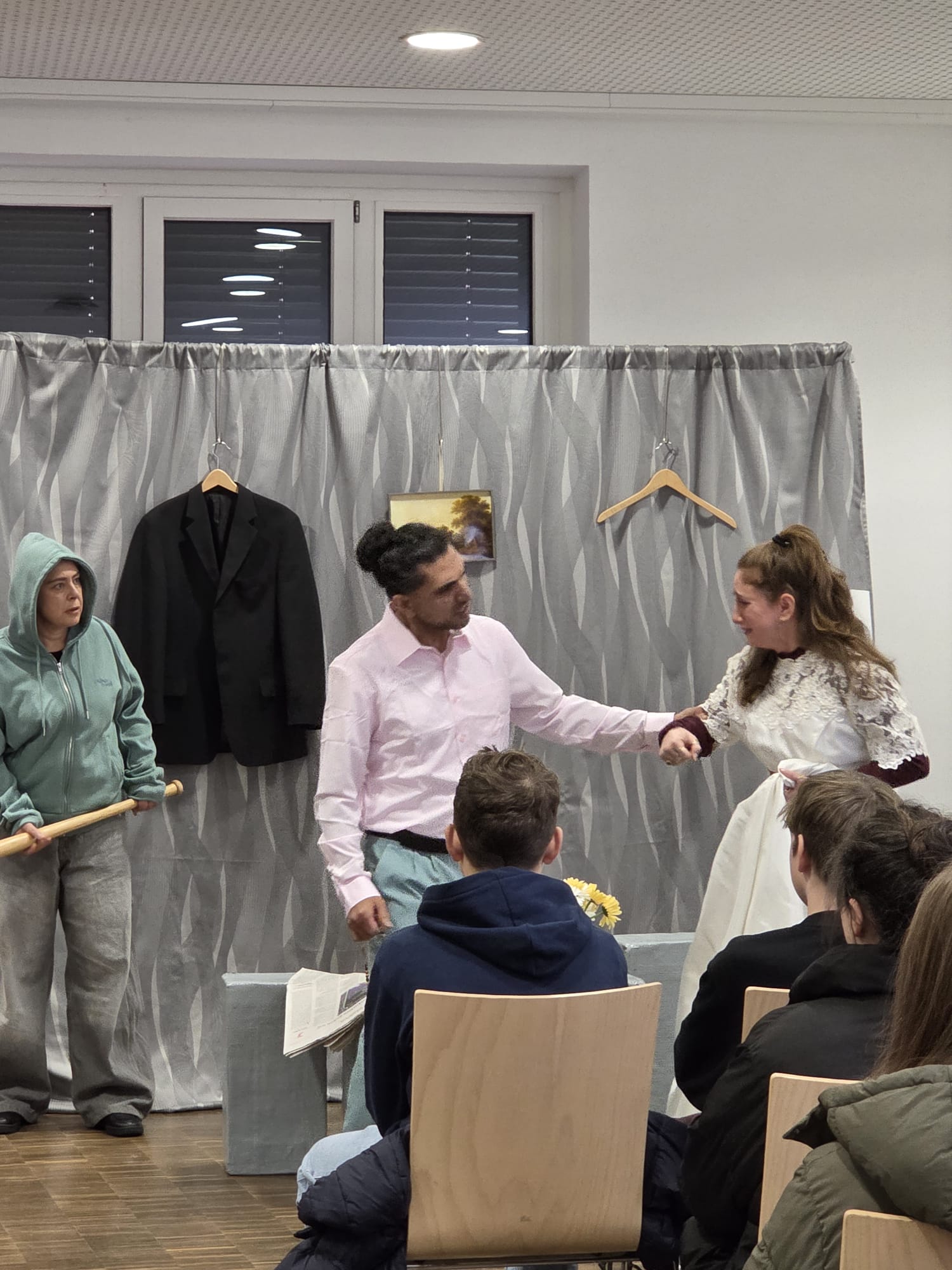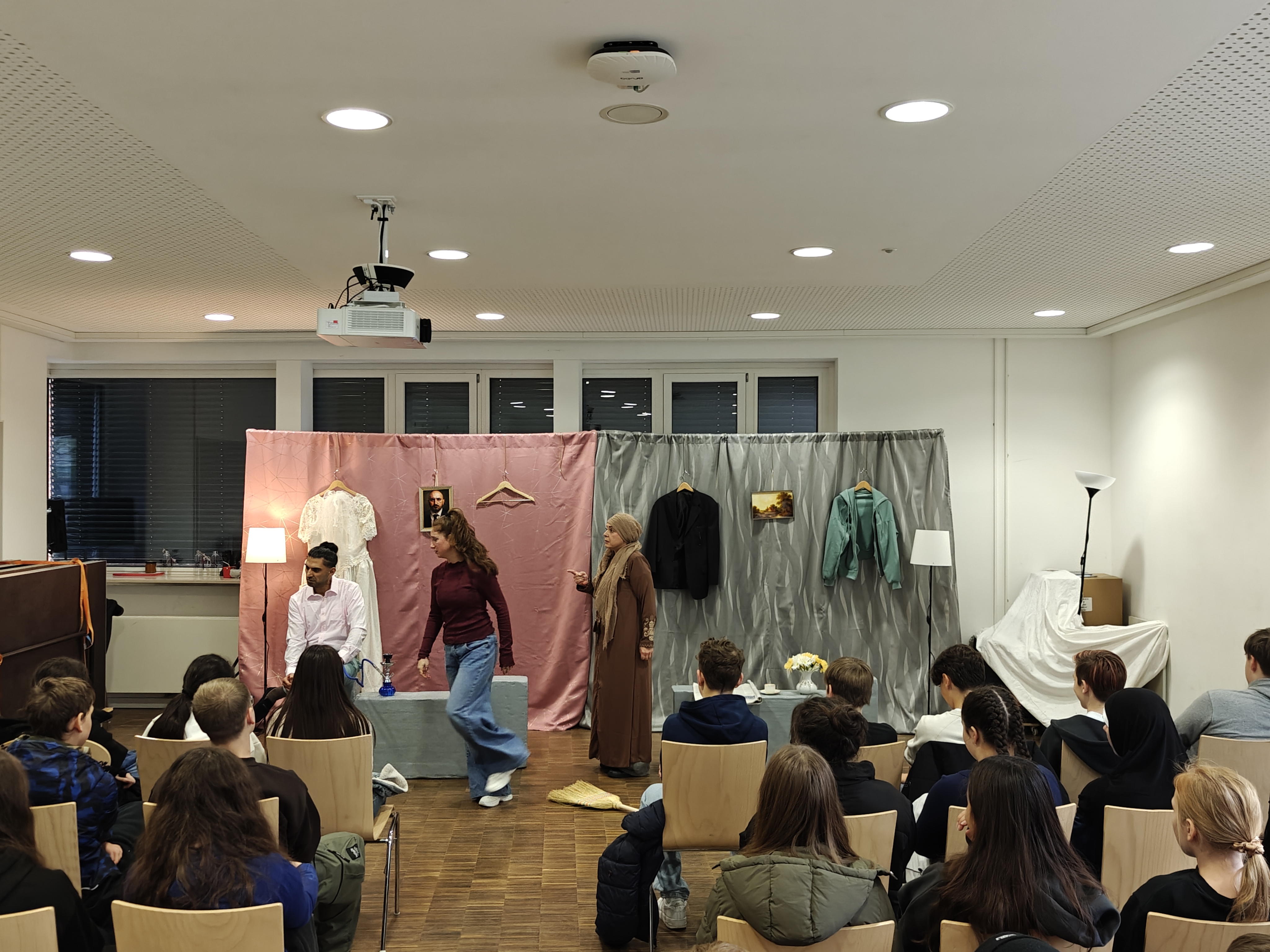 Am Freitag, 28. November fand die Premiere des Theaterstücks „Zerrissen“ von Irfan Taufik und Theater TEVO e.V. an unserer Schule statt. Unser neue Pate für Schule ohne Rassismus/Schule mit Courage Irfan Taufik – Schauspieler, Regisseur und Theaterpädagoge schenkte unserer Schule zu seinem Einstand das besondere kulturelle Highlight. Die Klassen 8e und 7A kamen in den Genuss. Das Forum-Theaterstück „Zerrissen“ beleuchtet den Konflikt zwischen kultureller Tradition und dem Wunsch nach persönlicher Freiheit. Im Mittelpunkt stehen Sümeyra, eine junge Frau mit Migrationshintergrund, und Melanie, ein deutsches Mädchen, das sich aus Einsamkeit und Orientierungslosigkeit einer rechtsextremen Gruppe anschließt. Beide fühlen sich in ihrer Umwelt unverstanden und gefangen zwischen Erwartungen und eigenen Träumen. Sümeyra kämpft gegen familiären Druck, Ehre und eine geplante Zwangsheirat, während Melanie nach Zugehörigkeit und Anerkennung sucht – und sich dabei immer weiter radikalisiert. Das Stück lädt das Publikum ein, über Identität, Toleranz, Angst und die Verantwortung jedes Einzelnen in einer vielfältigen Gesellschaft nachzudenken.