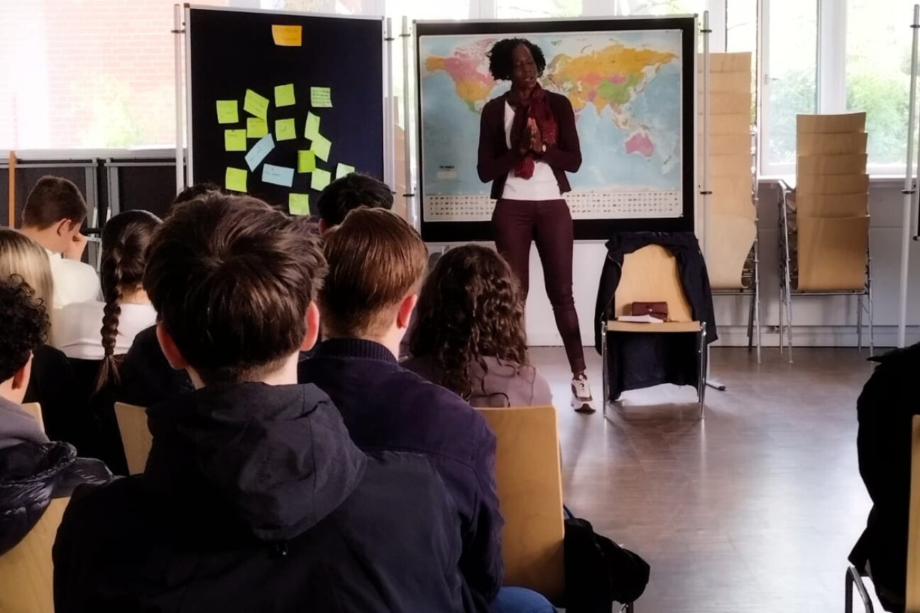 Im Rahmen des Projekts „Schule ohne Rassismus – Schule mit Courage“ hatte unsere Schule am 11.04.2025 die besondere Gelegenheit, eine Ärztin aus Kamerun als Gastrednerin zu empfangen, die selbst nach Deutschland migriert ist. Organisiert wurde die Veranstaltung von Frau Mago und Herrn Baier. Sie richtete sich an die Klassen 10b und 10c, die im Vorfeld Fragen vorbereitet und sich intensiv mit dem Thema Migration auseinandergesetzt hatten.