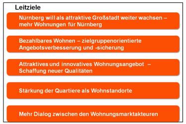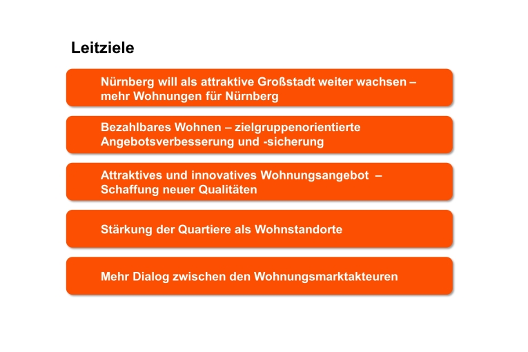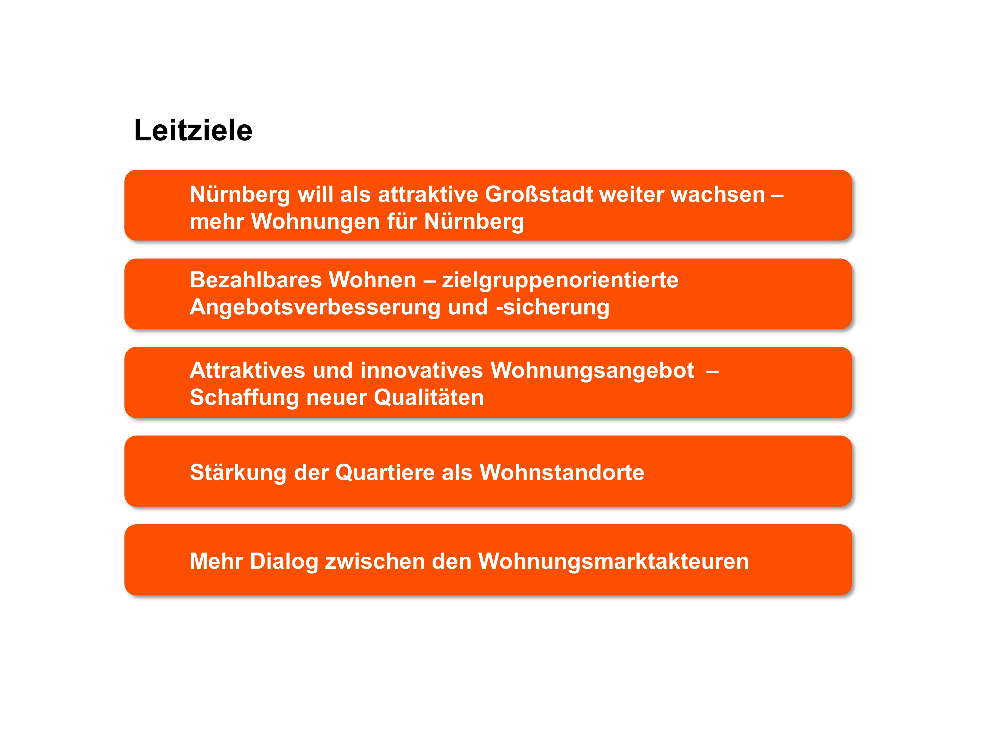 Die Stadt Nürnberg verfolgt folgende wohnungspolitische Leitziele, die aus den Analyseergebnissen des Gutachtens abgeleitet wurden: