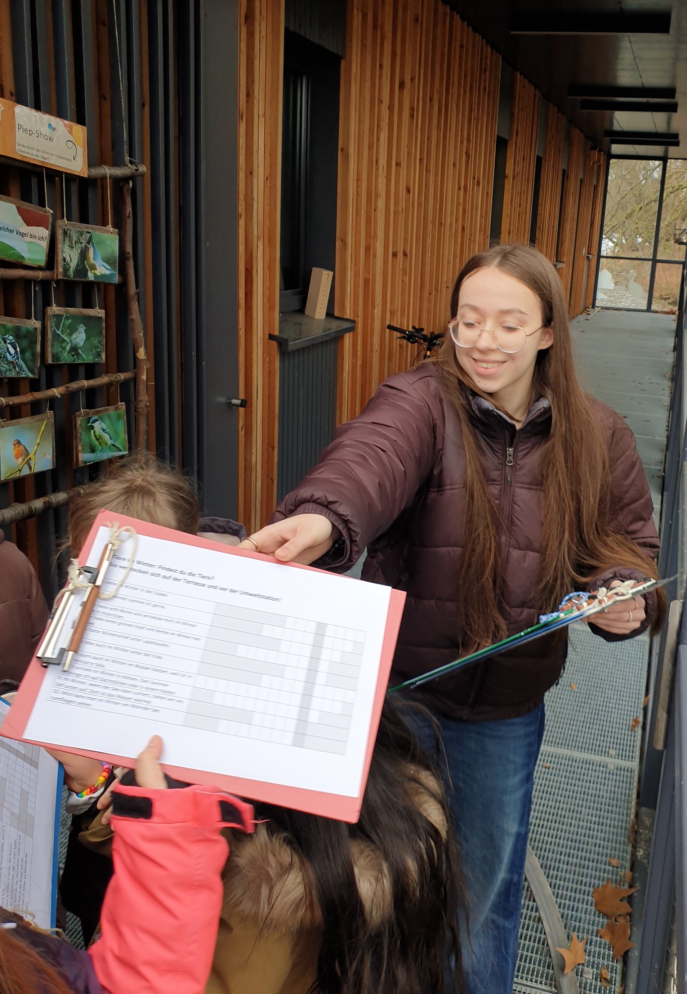 Johanna Borgolte macht derzeit ihr FÖJ in der Energie- und Umweltstation und kümmert sich bei den Umweltbildungsangeboten mit Begeisterung um die Kinder und Jugendlichen: „Ich freue mich jeden Tag, in die Energie- und Umweltstation zu kommen. Die Arbeit hier ist sehr abwechslungsreich: Morgens bin ich mit den Gruppen beschäftigt und am Nachmittag kümmere ich mich um die Vorbereitung weiterer Veranstaltungen, entwerfe Konzepte für unsere offenen ‚Hereinspaziert!-Nachmittage‘ oder kümmere mich um unseren Instagram-Auftritt.“