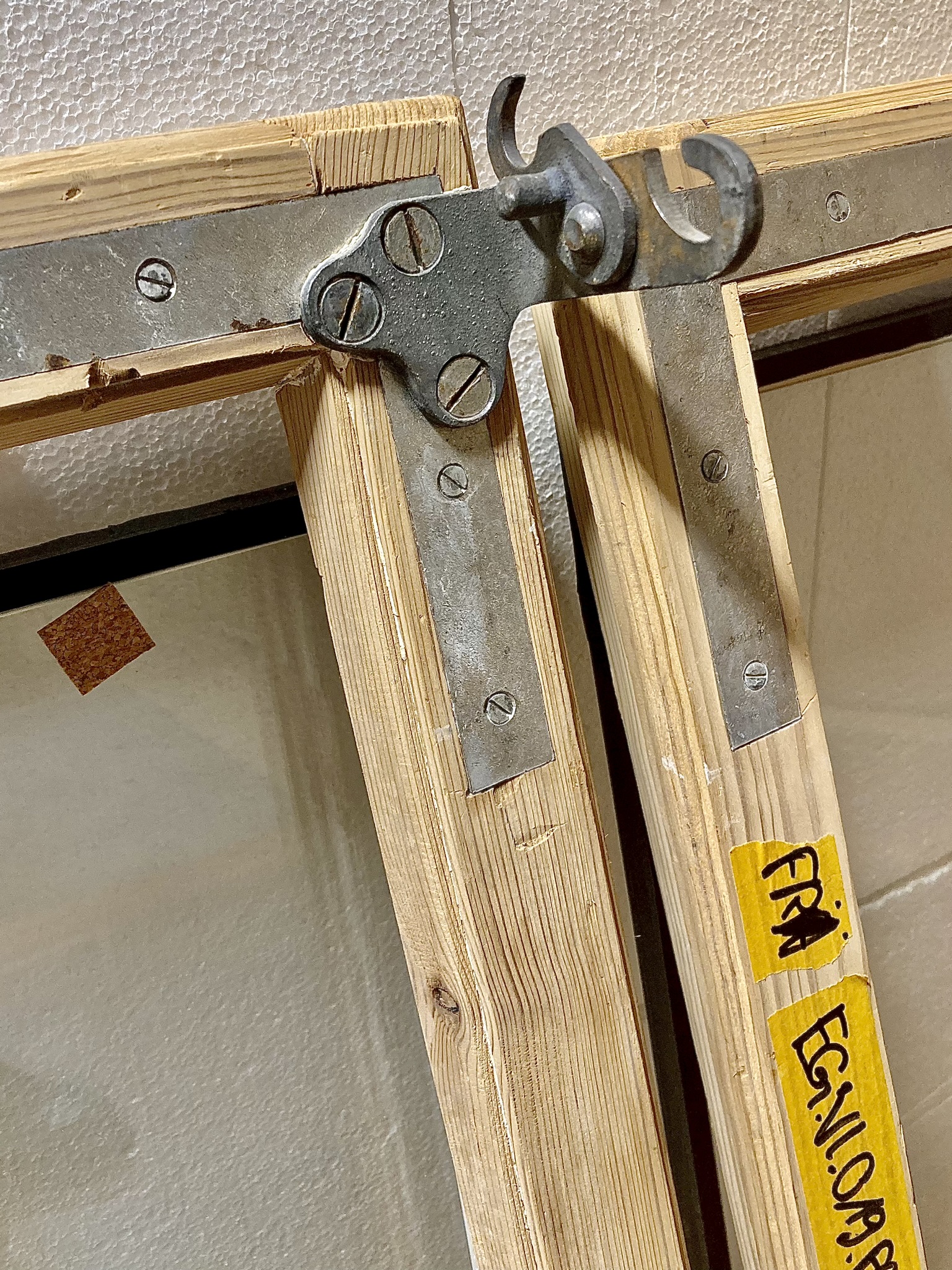 Jedes Fenster wird per Hand von alten Lackschichten befreit, bei Bedarf entglast, und die Beschläge werden entfernt. Diese werden dann einzeln von sämtlichen Farb- oder Korrosionsresten befreit, bis sie wieder wie neu aussehen. Ein Schreiner prüft jedes Fenster und ergänzt kleine bis große Details, bevor dann wieder Glas eingesetzt wird. Die Gläser wurden für jedes der Fenster maßangefertigt, je nach Größe und Anforderung. Am Ende werden die Fenster lackiert. Während der Arbeiten werden außerdem alle Sanierungsschritte katalogisiert, um zu dokumentieren, welche Sanierungsschritte jedes Fenster durchlaufen hat. tom