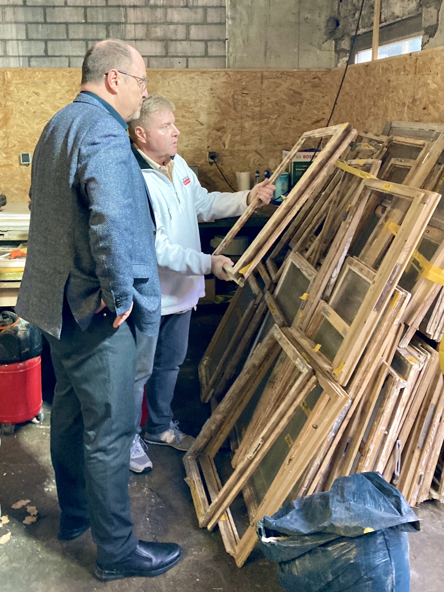 Bürgermeister Christian Vogel, Erster Werkleiter von NürnbergBad: „Alles soll qualitativ hochwertig werden, so wie es 1910 bis 1914 erbaut wurde. Man sieht im Volksbad, wie viel Liebe damals ins Detail gesteckt wurde und wie stolz man auf die Arbeit war, ob bei den Mauern oder den Fliesen. Und natürlich auch bei den handgefertigten Fenstern.“ Davon gibt es im Volksbad 424 Stück. Jedes einzelne davon wurde im Zuge der Revitalisierung begutachtet, um zu entscheiden, ob und wie sie bearbeitet werden können. Nun werden die historischen Holzfenster von einer denkmalerfahrenen Fachfirma nach Wendelstein gebracht und dort Schritt für Schritt ertüchtigt.