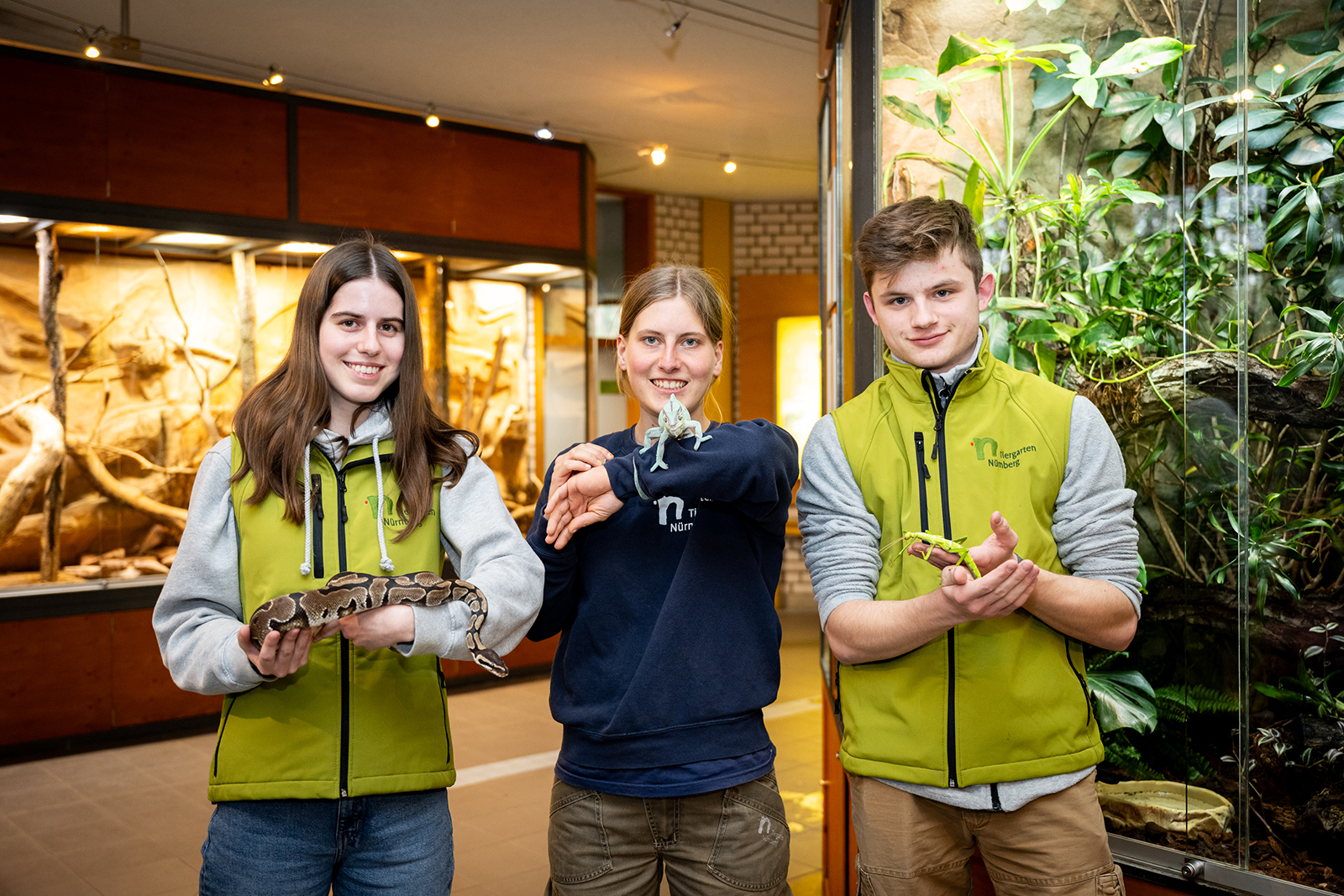 „Unsere Zoobegleiterinnen und Zoobegleiter zeichnet nicht nur eine große Neugierde für Natur, Tiere und Pflanzen aus, sondern auch die Freude, ihr Wissen zielgruppengerecht zu vermitteln“, sagt Zoopädagogin Barbara Reinhard. Einige der Mitarbeitenden haben einen pädagogischen Hintergrund oder Erfahrung in der Arbeit mit Menschen – Voraussetzung für den Job ist das aber nicht. „Alle Zoobegleiter bekommen eine fundierte Einarbeitung, in der wir ihnen biologisches Grundwissen an die Hand geben, umfassende Informationen über die Arbeit von Zoos im Allgemeinen und Wissen über die Tiere im Tiergarten Nürnberg im Besonderen.“