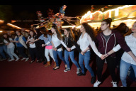 Sieben Vereine präsentieren ihre traditionellen Tänze auf zwei Bühnen: im Frankendorf und in der Schwarzwaldmühle. Zwischen den Auftritten spielt jeweils das Zorbas Duo griechische Musik. Zum Abschluss gegen 21.30 Uhr kann der „Chasaposervikos“ in der Schwarzwaldmühle mitgetanzt werden. Direkt vom Olymp auf den Volksfestplatz steigen zwei griechische Götter herab: von der Mythologie mitten hinein in die Gegenwart. „Das Theaterprojekt“ zeigt „Es ist nicht leicht, ein Gott zu sein“ um 18.30, 19, 19.30 und 20 Uhr am Riesenrad.