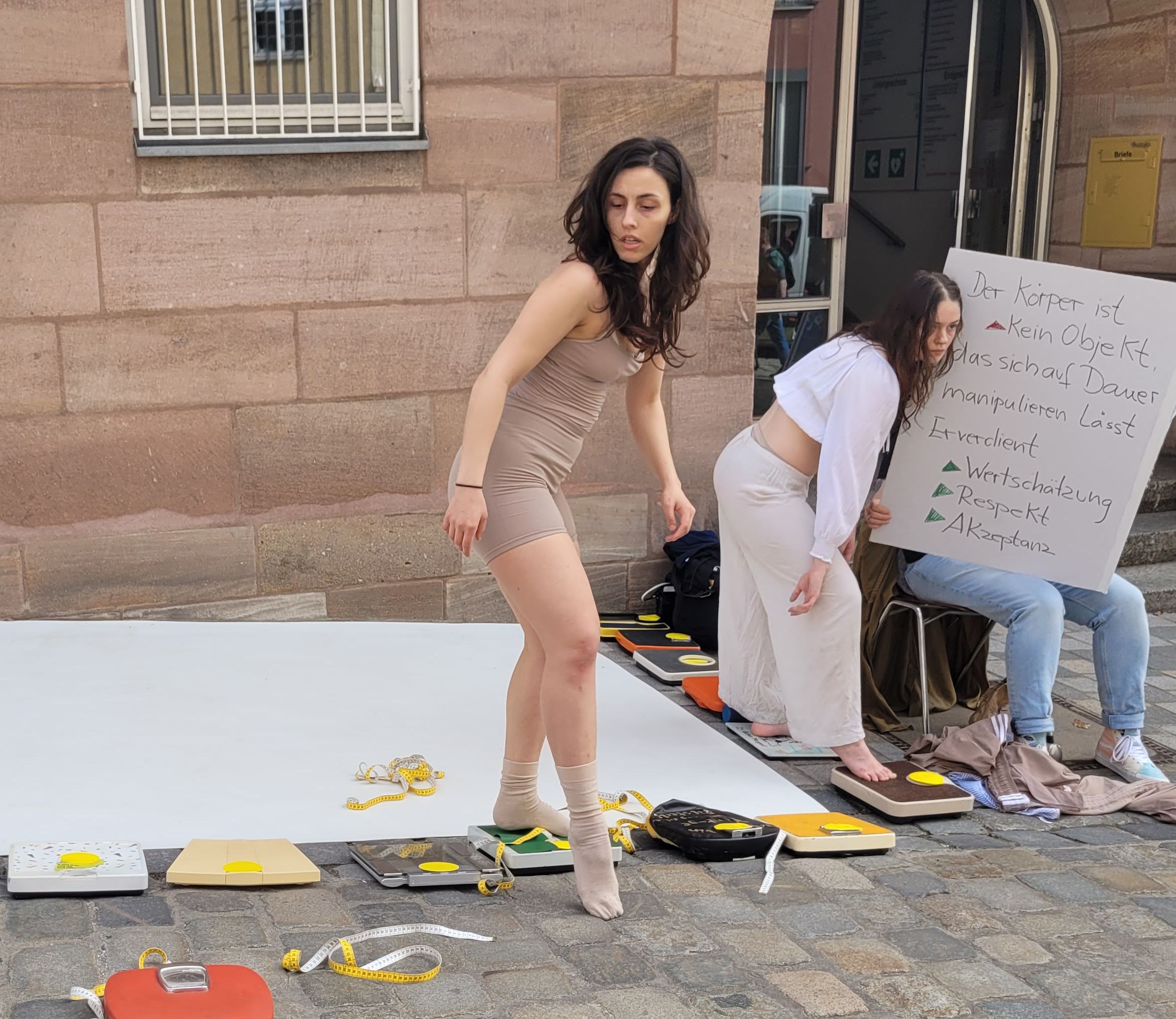 Schulklassen ab der 8. Jahrgangsstufe können sich bis Freitag, 19. April 2024, in der Ausstellung „Der Klang meines Körpers“ im Gesundheitsstudio des Gesundheitsamts, Burgstraße 4, über Essstörungen informieren. In der Schau erhalten Besucherinnen und Besucher Einblicke in die Gefühlswelt der Betroffenen, können Informationen über die Erkrankung sammeln und erfahren, wo sie Hilfe bekommen, wenn sie selbst von Essstörungen bedroht sind. Begleitet wird die Ausstellung am Eröffnungstag durch das Tanztheater „GegenGewicht – Du bestimmst Deinen Wert selbst“ der Formation „mind.and.dance“. Die Künstlerinnen machen hierbei mit gesammelten Personenwaagen auf das Thema Essstörungen aufmerksam.