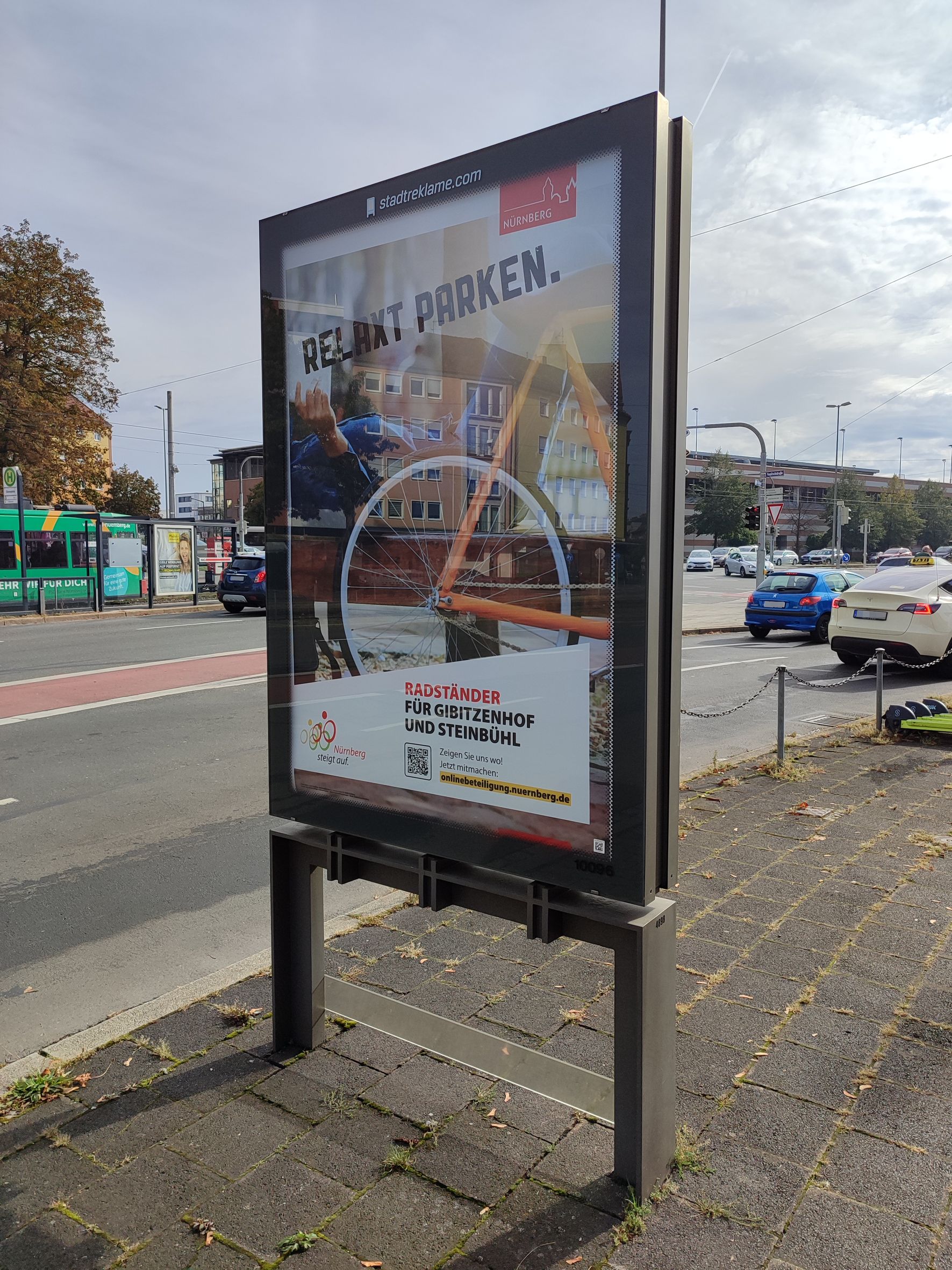 Zuletzt fand im Herbst 2023 eine Onlinebeteiligung für das Gebiet Gibitzenhof und Steinbühl statt. Zu den rund 70 Standortvorschlägen der Verwaltung kamen rund 25 neue Standorte aus der Bürgerschaft dazu, die nun auf ihre Umsetzbarkeit geprüft werden. Die Resonanz zu der Onlinebeteiligung war in diesem Gebiet geringer als bei den Vorgängerprojekten. Dies liegt unter anderem daran, dass ein Teil der Gebietsfläche von gewerblicher Nutzung geprägt ist. „Über 150 Bewertungen zu den Verwaltungs- und Bürgervorschlägen zeigen jedoch, dass das Interesse trotz der vergleichsweise geringen Zahl der Vorschläge aus der Bürgerschaft vorhanden ist und die Aufstellung von zusätzlichen Radständern begrüßt wird“, so Planungs- und Baureferent Daniel F. Ulrich.