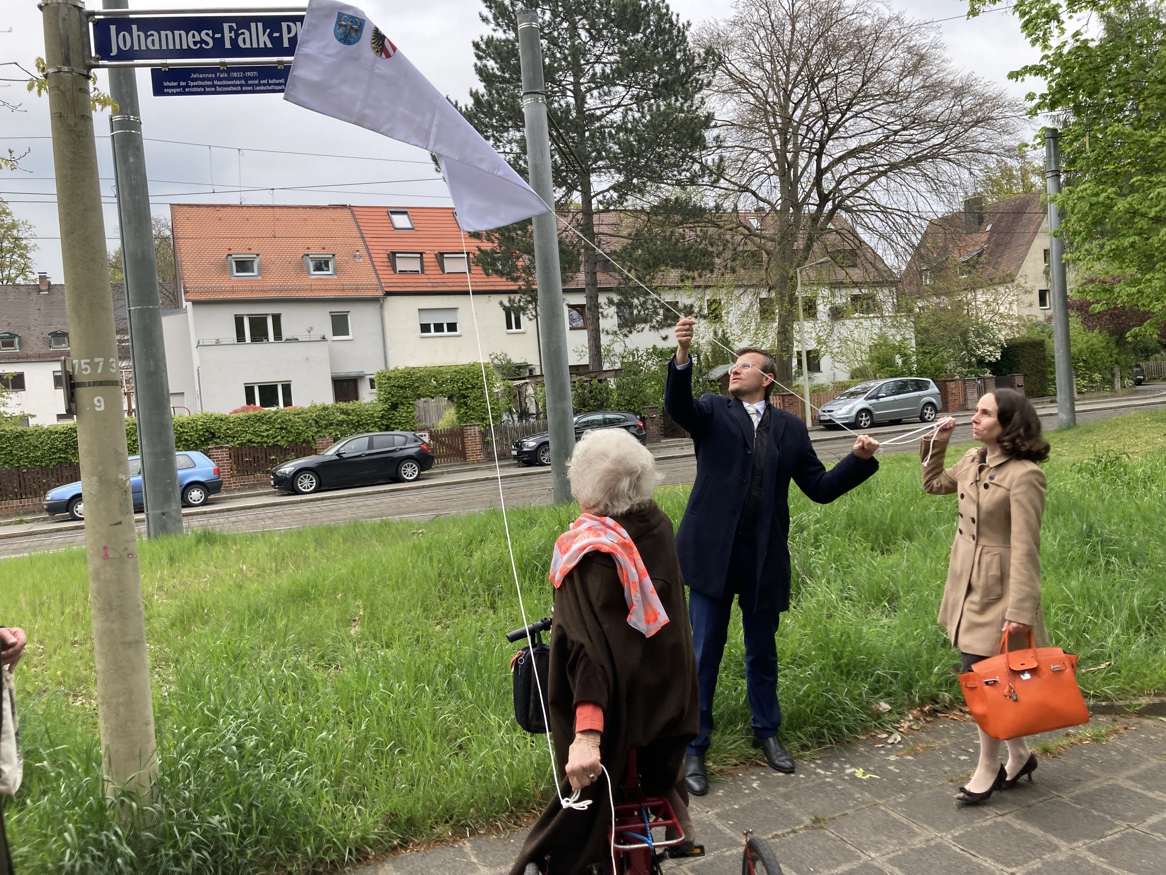 Die Wendeschleife an der Ecke Seminarweg / Dutzendteichstraße / Bayernstraße ist nach dem Nürnberger Unternehmer Johannes Falk benannt worden. Der neue Johannes-Falk-Platz liegt in räumlicher Nähe des Wirkens von Johannes Falk. Das Straßenschild des neuen Johannes-Falk-Platzes wurde am Mittwoch, 24. April 2024, enthüllt. Die Umbenennung hatte der Verkehrsausschuss des Nürnberger Stadtrats am 19. Oktober 2023 beschlossen.