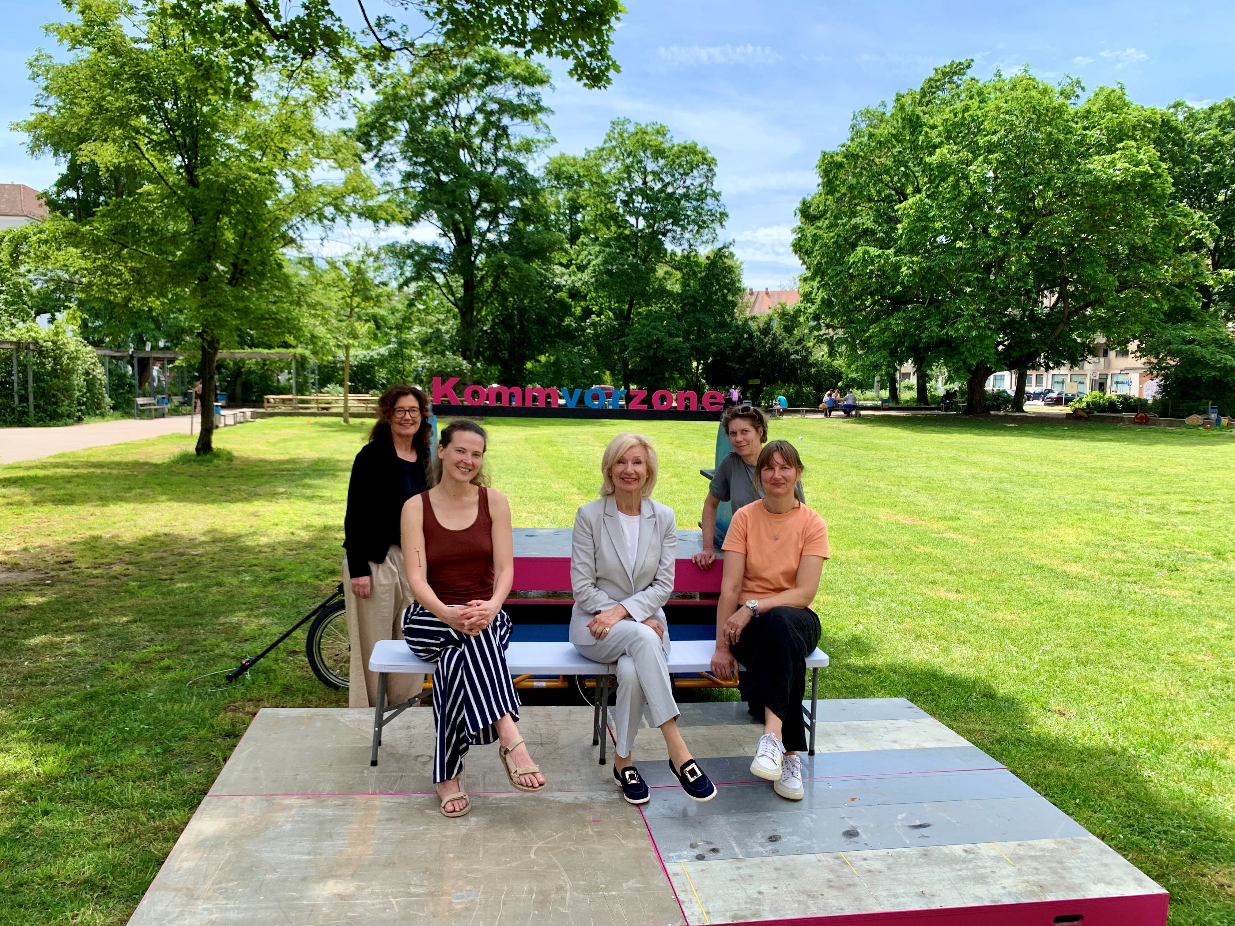 Der Veranstaltungssommer ist nur ein kleiner sichtbarer Teil der gemeinsamen Arbeit. Denn die KommVorZone ist das gesamte Jahr im Stadtteil unterwegs – in Umfrageaktionen vor Supermärkten, in Stadtteilgremien, bei Vereinen und Initiativen und vor Ort, auf den Plätzen, um das Ohr an den Stadtteil zu legen, mit den Menschen ebenso ins Gespräch zu kommen wie mit Institutionen, Vereinen und Initiativen. Seit März finden regelmäßige Treffen zur Programmentwicklung statt. Bereits Mitte Mai tagte das „Stadtteilparlament“ mit der Stadtpolitik, dem Quartiersmanagement und dem Umweltamt in einer öffentlichen Diskussion zum Thema „Gute Nachbarschaft – aber wo?“ zur Aufenthaltsqualität rund um den Dianaplatz. Und auch nach dem Sommer wird die KommVorZone mit Lastenrad, langer Tafel und mobiler Bühne in den Stadtteilen klimaschonend unterwegs sein.
