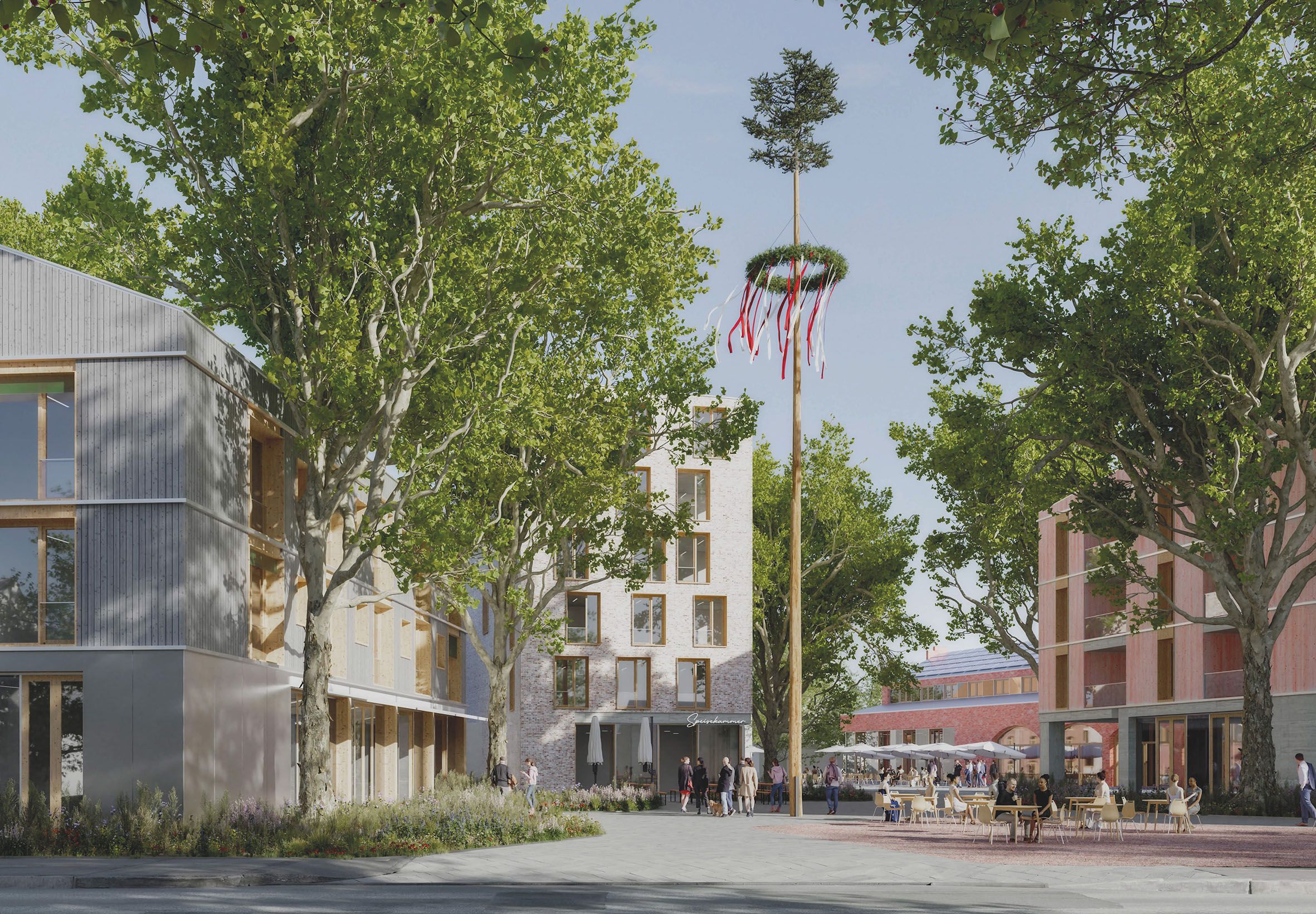 So ist geplant, eine Kita und eine Einrichtung für die Jugendarbeit zu integrieren. Auch neue Spielplätze und Freianlagen sollen entstehen. Es wird Atelierhäuser geben, die es ermöglichen, Wohnen und Arbeiten zu kombinieren oder Räume für Co-Working als Alternative zum Homeoffice. Gastronomie, ein Festsaal und eine Stadtteilbibliothek sind ebenso Bestandteil der Planung wie auch Räume, die vom Bürgeramt Nord genutzt werden können. Wohnungen für betreutes Wohnen für Seniorinnen und Senioren sowie ein Pflegestützpunkt ergänzen die Planungen. maj