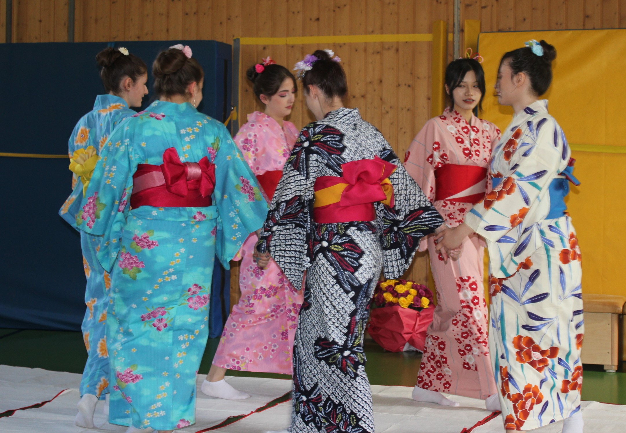 Die Kimono-Präsentation wurde durch Vertreterinnen der SODO Katahira Kimono Academy eröffnet und von einer Delegation aus Japan sowie der Modeschule gemeinsam gestaltet. Gezeigt wurden Sommerkimonos, das Anlegen eines Kimonos für ein junges Mädchen und eine verheiratete Frau, das Ankleiden einer Braut und die Gestaltung von Obis in Form von verschiedenen Blüten. Neben den Lehrerinnen der Kimono-Schule präsentierten Schülerinnen der Modeschule die beeindruckenden Kimonos.