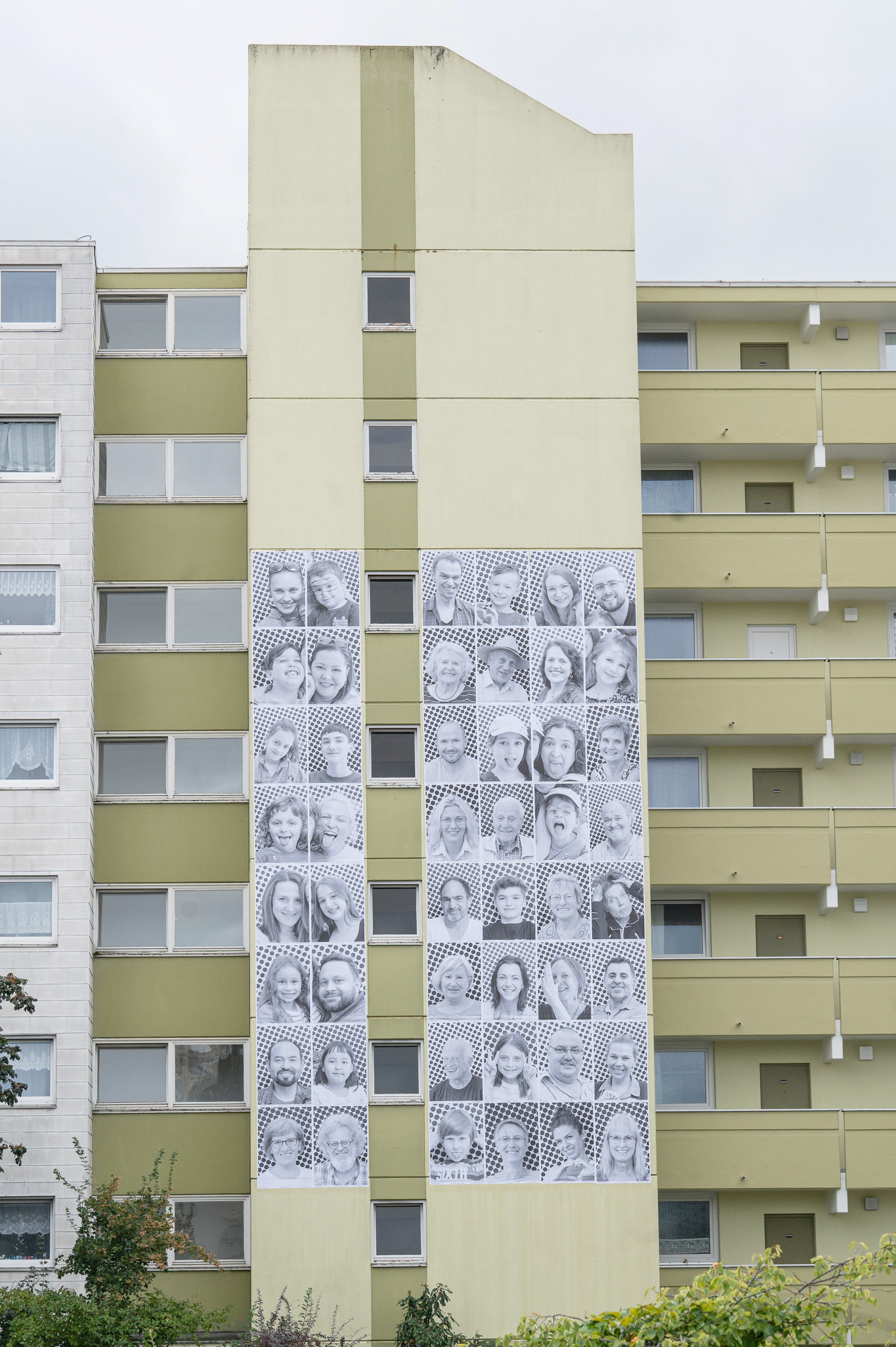 Die Würde des Menschen ist Rahmen und Thema zugleich. Von der Idee bis zur Umsetzung dauerte es über ein Jahr: In Zusammenarbeit mit dem ESW – Evangelisches Siedlungswerk wurden potenzielle Wände gesucht und schließlich in einer Wohnanlage des ESW in der Neuendettelsauer Straße gefunden. Der Kulturladen Röthenbach sprach über mehrere Monate hinweg Bewohnerinnen und Bewohner aus dem Stadtteil an und konnte schließlich rund 100 Menschen für das Projekt gewinnen. Diese ließen sich dann bei verschiedenen Gelegenheiten professionell fotografieren. Das Team von „INSIDE OUT“ mit Sitz in New York City realisierte die Drucke.