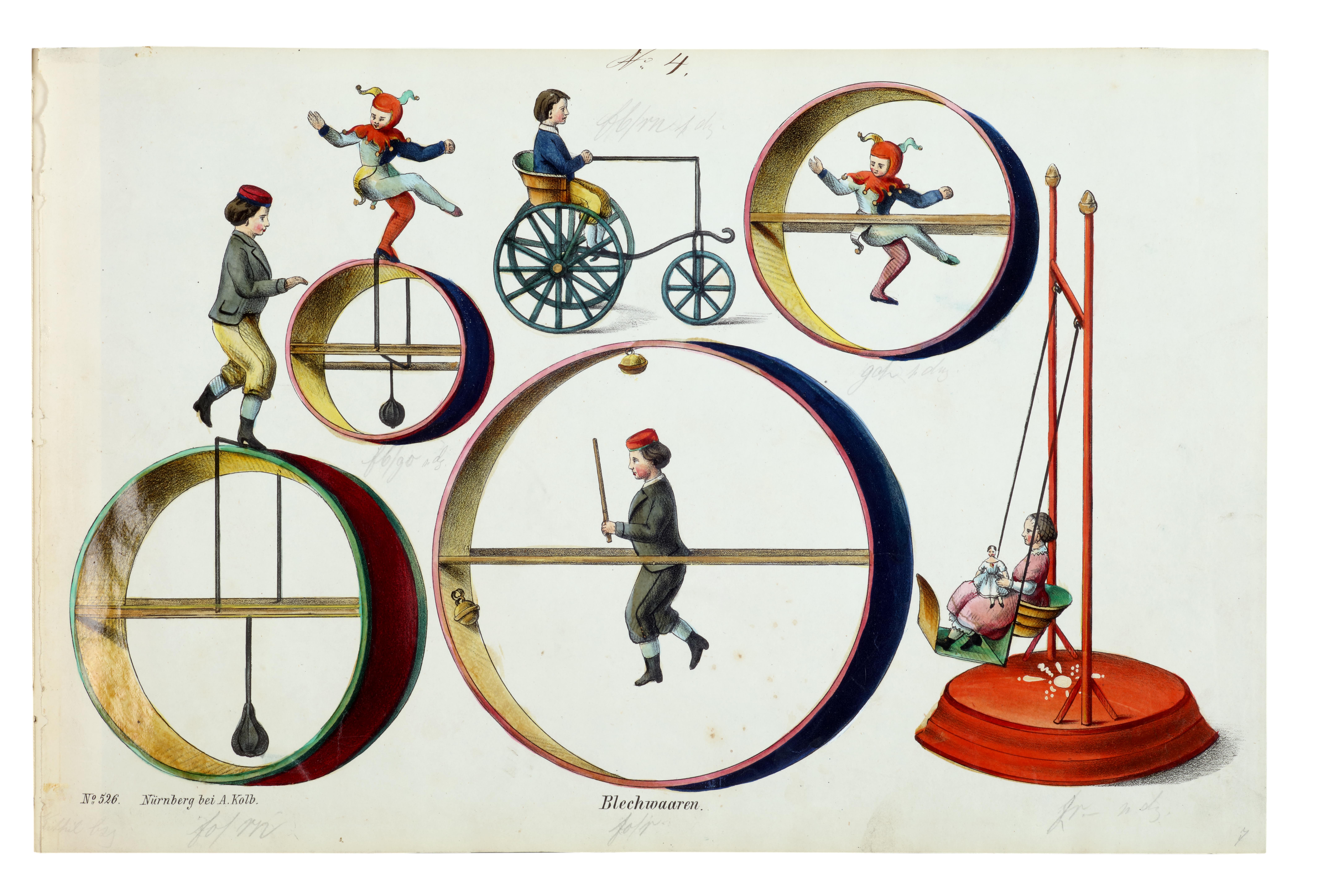 Im Archivbestand des Spielzeugmuseums befinden sich insgesamt sechs Spielzeug-Musterbücher aus der Zeit um 1850 bis 1880. Es sind frühe Zeugnisse indirekter Verkaufspräsentation, die weltweit zu den raren Quellen über die für die „Spielzeugstadt“ Nürnberg so bedeutende Spielwarenbranche zählen. Eines dieser Musterbücher ist nun als das 500 000. Objekt auf dem Onlineportal bavarikon veröffentlicht worden.